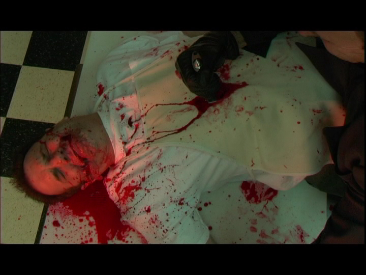 Indie director Ron Atkins has never been one to go for subtlety in his ferocious shot-on-video cult items like Eat the Rich and Dark Night of the Soul, but in recent years he's started to embrace linear storytelling and more traditional horror tropes with his best-known film to date, Mutilation Mile. Sandwiched somewhere between that film and his more experimental, excessive period is his 2005 Las Vegas slashasthon, Eyes of the Chameleon. The title comes from an early bit of expository business in which we're told that the chameleon is actually a predator that changes its colors to stalk its prey, and while that might sound a lot like the obscure Daphne Zuniga VHS thriller Prey of the Chameleon, this is a different animal entirely. After a harrowing opening sequence in which a young boy is verbally abused and confined by his father (or so it would seem), the story proper revolves around a bartender named Sara (played by the film's writer, Ann Teal), who hooks up with some cultists and seems to be the epicenter of a string of brutal murders committed by some creepy guy (Lawrence Bucher) with a fondness for butcher knives. However, suspicion seems to point to Sara herself as a possible culprit, and the cops can't quite decide what's going on until the blood-spattered finale. Though the storyline is more linear than prior Atkins outings, the film is still drenched in wild candy colors, weird tangents, and wildly erratic performances; it definitely won't be to every taste, but if you want to see something bloody but a little different, this could be just the ticket. Atkins' Cut Throat Video released this one independently back in '05 in a non-anamorphic 1.78:1 transfer, and that's been carried over here for its more mainstream (relatively speaking) official DVD from Troma. The transfer's adequate but definitely not as crisp and detailed as it probably could be. Extras include a gallery, an interesting director's commentary (you won't believe how long it took to make this), and a new, extremely silly video intro with Lloyd Kaufman and Debbie Rochon that's actually sort of clever... in a really stupid way.