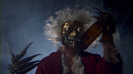 Short films tend to lend themselves to more narrative experimentation than feature films given the amount of time and money involved, and one of the most unusual efforts you'll come across on that front is Beneath the Veneer of a Murder, an eight-minute combination of pseudo-snuff exploitation and heady radio play-style thriller from director Angel Connell, who's been doing shorts like "She's So Cold" and "Stocking Stuffers" for the past couple of decades. Only two people actually appear on camera, Eric Scheiner and Christy Scott Cashman, for the sole live action scene in which a woman is murdered in front of a television set. However, the rest of the film involves onscreen quotes and voiceover telephone convesations laying out the action before and after, involving a political bigwig and an odd marital scenario that twists around to something a little different than your average thrill murder. It's a pretty audacious structural decision that will probably alienate a lot of unprepared viewers, but if you go along with it, this is definitely not your average horror short. You have to focus -- a lot -- to get what's going on in the short running time, so make sure you're paying attention when the opening credits first appear.