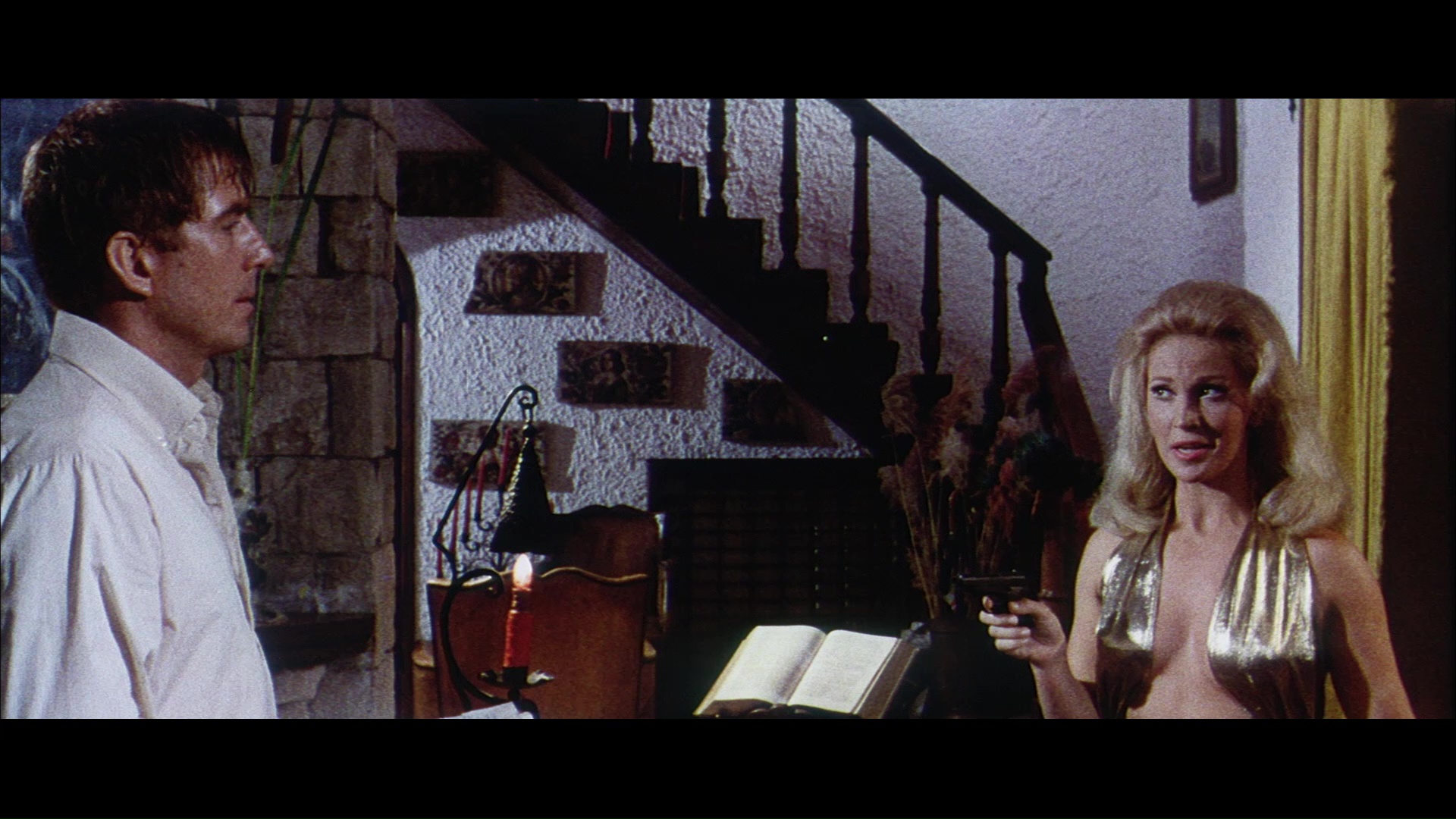 Speaking of different, Code Red isn't one to shy away from pairing up head-scratching films for double features -- and that's certainly what you'll find in the Blu-ray pairing of Antonio Margheriti's ragged 1966 Italian-Spanish action oddity Lightning Bolt (a.k.a. Operazione Goldman) and The Resurrection of Zachary Wheeler, a 1971 all-star sci-fi quickie basically thrown on here as a standard def extra. The main film stars Hawaiian Eye's Anthony Eisley as a wannabe 007-style hero named Harry Sennet who's out to stop a nefarious bad guy from toppling U.S. rockets (a la Dr. No) during their launch via a nautical base beneath the waves. Chock full of stock footage, big hair, ridiculous dialogue ("I'll kill you, fat man!", and jazzy Riz Ortolani music, it's pretty much mid-level Eurospy nonsense presented in surprisingly solid condition here with a 2.35:1 HD transfer that easily outclasses the terrible cropped versions seen on TV. The second feature doesn't fare as well, not surprisingly, and looks pretty ratty here. At least there's some amusement to be found in seeing Leslie Nielsen, Angie Dickinson, and Bradford Dillman slumming in an independent cheapie about a reporter (Nielsen) who starts snooping when he sees the fatally injured Senator Wheeler being wheeled away after a car crash, only to stumble on a conspiracy involving mysterious transplants, bongo drums, and a creepy twist that's still relevant today. Fortunately the concepts here are strong enough to overcome the ragged, TV-style execution, foreshadowing some of the medical and ethical terrors that would soon become commonplace in '70s sci-fi films. The Blu-ray also includes a fuzzy Lightning Bolt theatrical trailer and bonus ones for Foxbat, This Is a Hijack!, Warlock Moon, and Simon - King of the Witches.