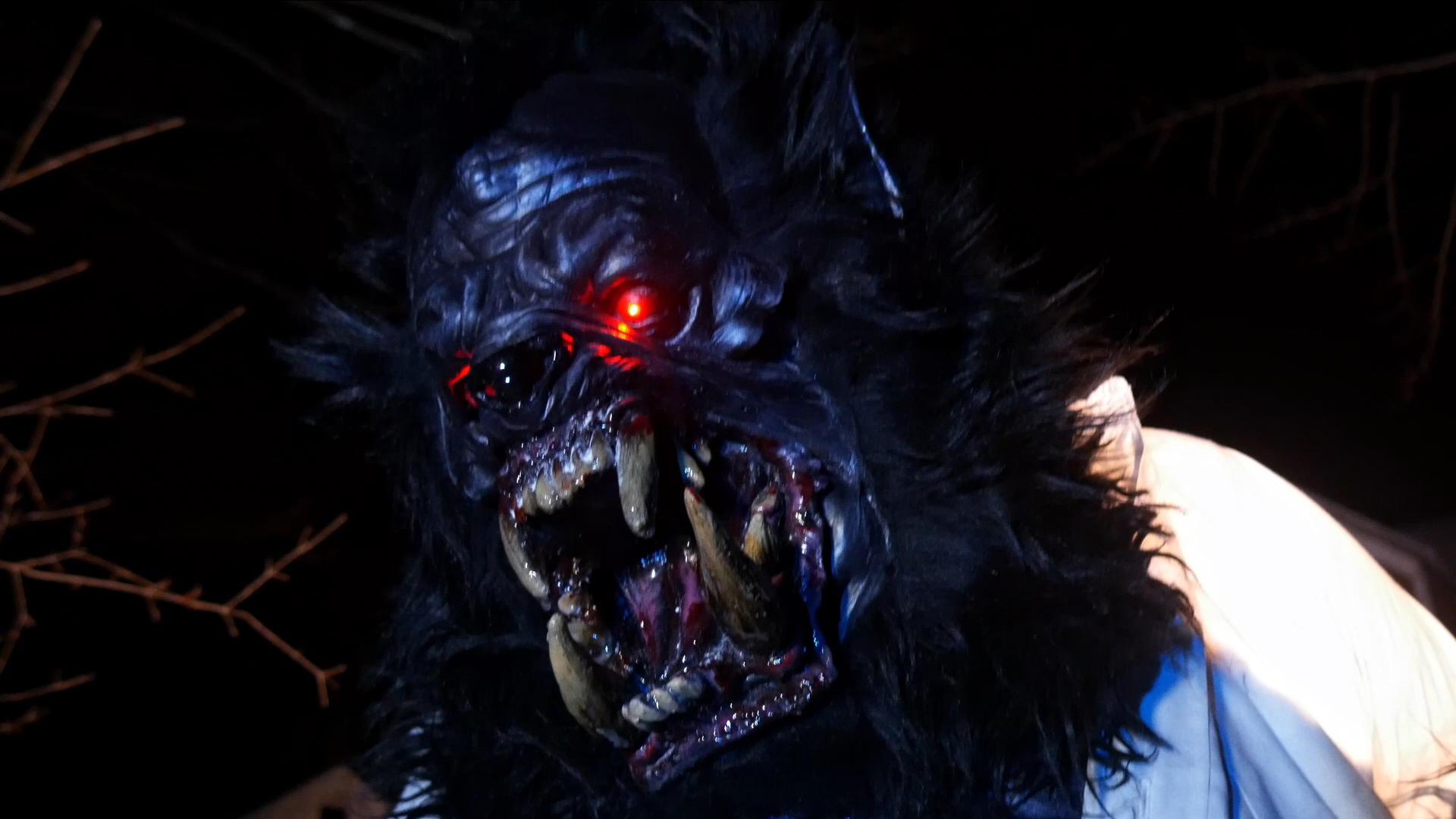 few have occupied a higher or more longstanding place in the pantheon than Mark Polonia, the surviving half of the genre-loving Polonia Brothers who scraped together dozens of backyard monster movie productions. In more recent years Mark has kept the torch burning by doing The Asylum-style quickies cashing in on the fondness for Amityville, killer sharks, and suspiciously titled projects like Dune World and Empire of the Apes. Case in point: 2023's Cocaine Werewolf, which has no coke-crazed bears but does deliver exactly what the title promises: a drug-addled guy in werewolf suit with red glowing eyes killing off lots