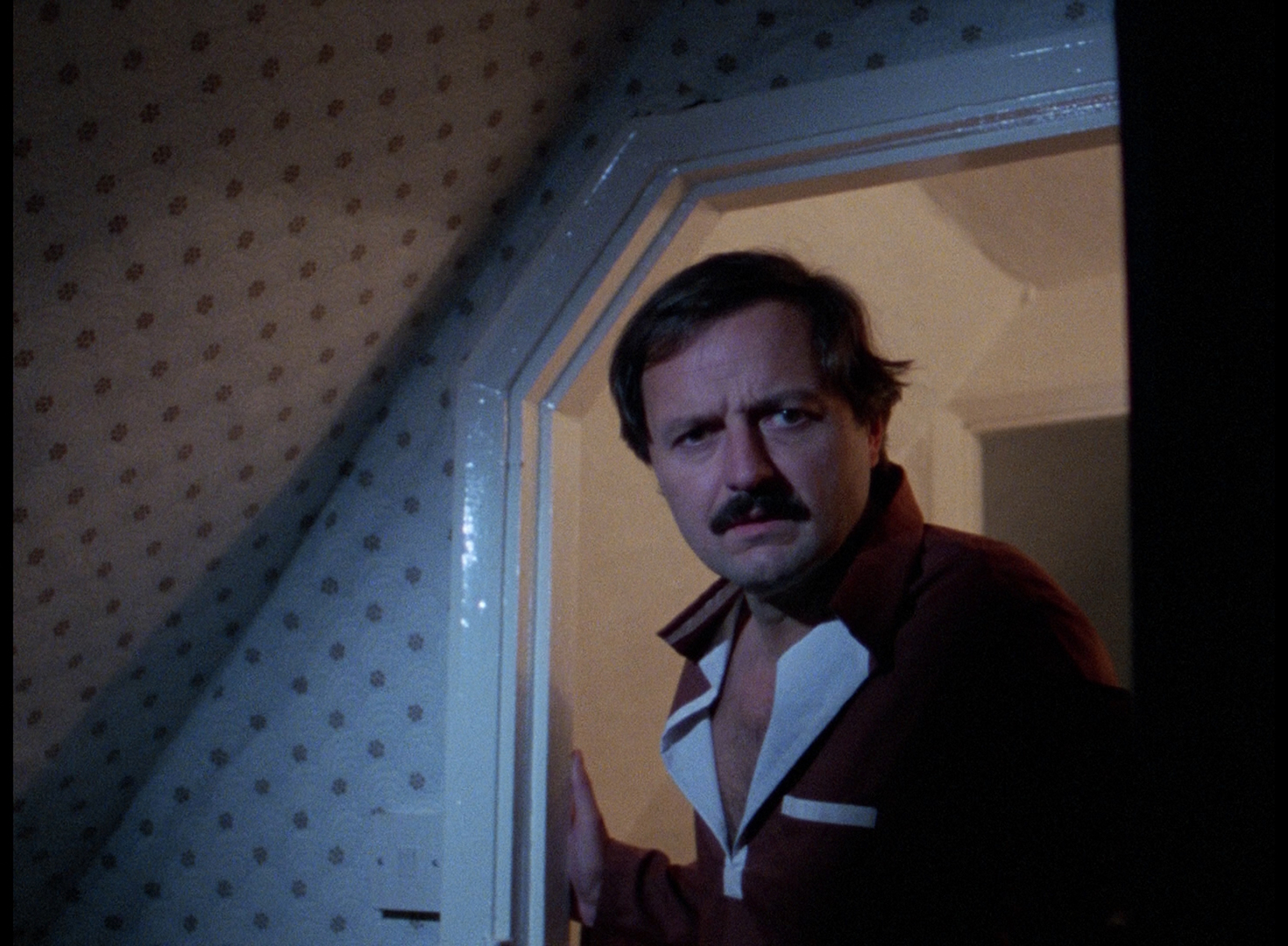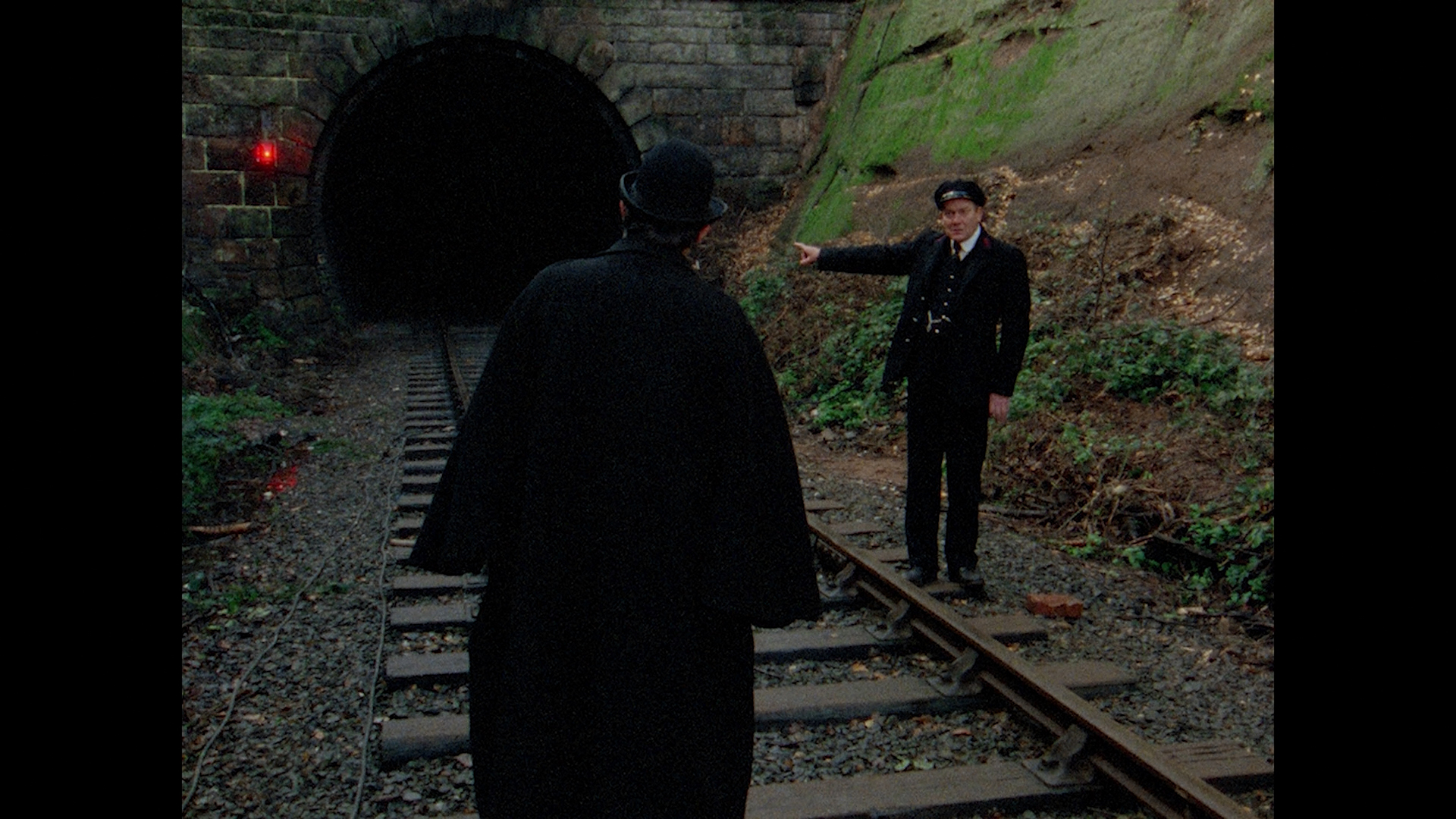 By the mid-1970s, the annual TV ritual was bound to change after a succession of M.R. James adaptations. The 1976 entry was originally planned as James' "Count Magnus" (eventually filmed in 2022), but budgetary costs sent them searching for a new short story to adapt. The choice was made to tackle Charles Dickens' classic tale The Signalman, a short and chilling two-character piece that could easily be filmed in the English countryside with a minimum of actors. Fortunately the result, which kicks off the second Blu-ray, turned out to be one of the best in the series (in fact, it's a favorite of many), thanks in no small part to its sterling performance by Denholm Elliott and an underrated but effective one by TV actor Bernard Lloyd. It also didn't hurt that this was one of the earlier writing credits for Andrew Davies, who went on to write the terrific (and maddeningly still unavailable) BBC thriller Mother Love and the definitive version of Pride and Prejudice. (He also wrote the Bridget Jones movies, but everyone has to pay the rent.)