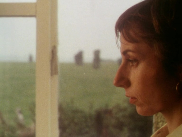 In a move that proved to be less than wise, the decision was made the following year to switch things to the present day and go with an original script not based on a short story. The result was Stigma by TV writer Clive Exton, a surprisingly intense and graphic bit of business that would still never come close to airing on prime time television in America. For the first time the focus here is not on men overtaken by the supernatural but a woman, in particular her body. Kate Binchy (who would next appear in the marvelous "Quiet as a Nun" installment of Armchair Thriller) stars as Katherine, who moves to a country home along with her husband, Paul (Bowles), and daughter Verity (Gordon). Some workmen are instructed to remove a large ancient stone in front of the house, part of a rock formation linked to a primitive sacrificial rite. As soon as the stone dislodges from the earth, a strong wind blasts both Katherine and Verity into near catatonia. Soon Katherine is plagued by uncanny events like blood seeping from her skin, fissures appearing in the walls and mirrors, and something rustling downstairs at night.