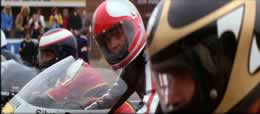As for the actual storyline, it's basically the same plot from Viva Las Vegas transposed to the motorcycle set as Nick Freeman (pop star David Essex), mourning the death of his brother in a bike mishap, is seen competing in a race against his greatest nemesis, American racer Bruce McBride (Bridges), who even wears a big American flag design on his helmet to avoid confusion. Both of them have their eyes on pretty Julie (Raines, fresh off The Sentinel), and Nick spies his chance at greatness when his brother's widow asks him to sell off the bikes in their garage. There he discovers the untested prototype for, yes, the Silver Dream Racer, an innovative (and apparently real) creation that could change the motorcycle community and propel Nick to glory. With Julie agreeing to get him the backing to get the bike ready for the race, he decides to go for his big shot...