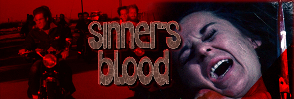 A one-shot offering from almost everyone involved, Sinner's Blood does for rough and tumble bikers what Manos, the Hands of Fate did for road trips. Things start off kinda-sorta normally as perky young things Penny and Patricia (Sheldon and Beal) hop off a train in a small town to stay with their twitchy aunt and per