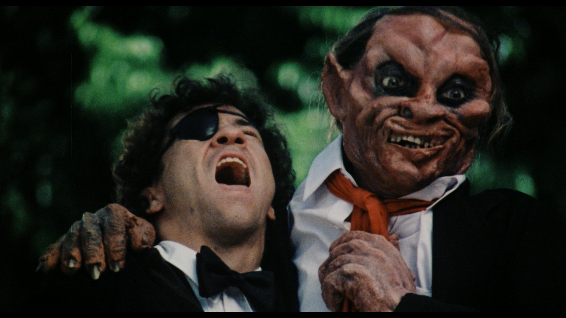 The Vinegar Syndrome disc features a fresh scan from negative and actually represents the extended cut of the film, clocking in several seconds longer with a smattering of extra blood. Visually it looks similar during daylight scenes and varies during the darker ones, sometimes sharper and brighter and at other looking about the same or darker. The DTS-HD MA English 2.0 stereo track sounds excellent with a bit more heft and channel separation than before, with English SDH subtitles provided. The extras here are more comprehensive as well starting with a new von Sternberg interview, "Low-Key Horror" (11m12s), about some of the more innovative experiments he enjoyed on the film including shooting on roller skates at Alcatraz. Then in "The Girl That Lives" (19m26s), actress Tammy Hyler explains how she got into acting after moving to L.A. at 18 and enjoyed a rare opportunity to play a final girl, as well as the prep involved in getting ready to make a horror movie and the friendships she kept from the experience. Celozzi appears next in "Wearing the Right Clothes" (15m55s) chatting about his surprise at the film's eventual cult following, the process that led to him getting hired on this film when it was being compared to Elm Street, his relief at not having to wear those crazy contacts, the huge amount of lines he had to learn, and the execution of a pivotal fire scene. Finally in "Lunch Break with Claws" (19m13s), actor Al Fleming touches on the multiple duties he performed on the film (including a bit of pitching in on makeup) and how they came up with the conception of the monsters.