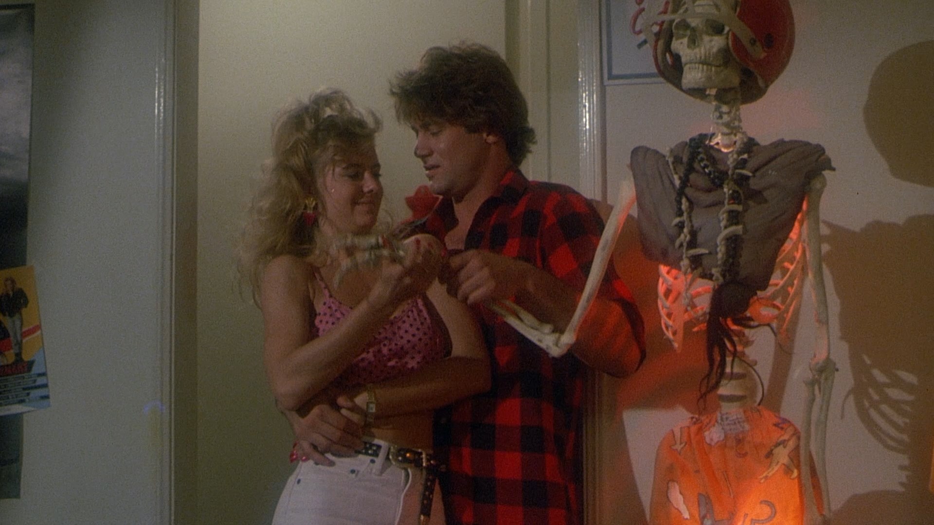 anyway. More oddly, in addition to some of the obligatory female topless shots, the film features an insane amount of shirtless beefcake and bro bonding that puts this somewhere between David DeCoteau territory and famous coded closeted horror films like A Nightmare on Elm Street 2: Freddy's Revenge and The Lost Boys.
