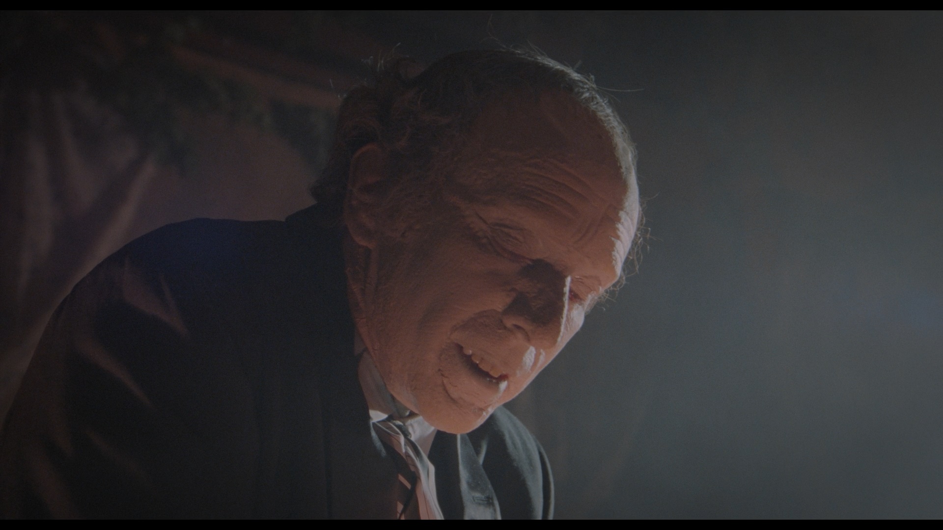 The feature-length documentary "Twisted Tale: The Unmaking of Spookies" (100m54s) by Michael Gingold and Glen Baisley is a fascinating, hilarious, and frequently startling look at the film's insane history with Faulkner, Farel, cinematographer Ken Kelsch, creature effects artist John Dods, art director Cecilia Doran, original editor John Donaldson, actors Anthony Valbiro, Nick Gionta and Debbie Rochon, makeup effects artist Vincent Guastini, sound effects editor Brian O'Hara, and journalist Max Evry. You'll find out how the original filmmakers cut their teeth under Roy Frumkes (including the now notorious Tales That'll Rip Your Heart Out), wound up visiting the set of Dawn of the Dead and ended up in the film, and had to perform salvage work on what became Igor and the Lunatics. Of course the bulk of the story here is about Lee's inexperience with filmmaking and his intense oversight that eventually led to disaster, a fate that also befell another film he was making at the same time, The Anger (shown here in footage from the rough cut). You also get a good look at the house location in its current state, the creation of the props and monsters (including the story behind the Ouija board), and lots of stories about Lee's questionable creative input involving a gorilla suit and fart gags. Appropriately it all ends with a visit to the grave of Doran, who passed away in 2016, and a reflection on what he poured into the film that never had a chance to turn out the way it was originally intended. The doc can also be played with a 43-minute audio commentary by the two directors explaining how they tracked down the interview subjects, did research on such a confounding film, and came up with an approach to tell this truly insane story. A batch of deleted scenes (13m5s) from the doc is also included with a few extra tangential stories. Then you get Jason Impey's epic "Vipco: The Untold Story" (132m21s), which features a very valuable interview with the once elusive Lee along with scholarly context by Impey, Kim Newman, Neil Jackson, Kate Egan, James Simpson, Mark McKenna, Bazz Hancher, Jay Slater, Kevin Gates, Graham Humphreys, Barrie Gold, Nigel Wingrove, Martin Myers, and Johnny Walker laying out the history of the label and its major role in the video nasty saga despite its very small scale operation. Along the way you get plenty of tales about notorious titles like Zombie Creeping Flesh, Amin: The Rise and Fall, The Driller Killer, and plenty more. An extended interview with Lee (26m4s) is also included in its entirety along with a trailer for the doc. VINEGAR SYNDROME (Blu-ray)