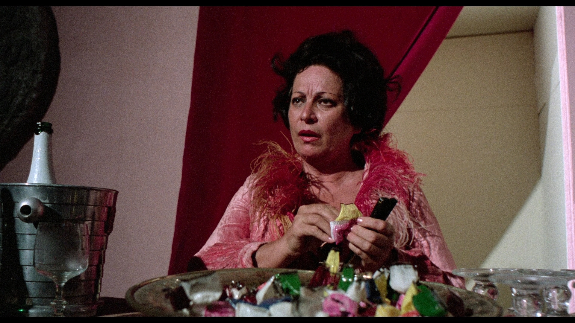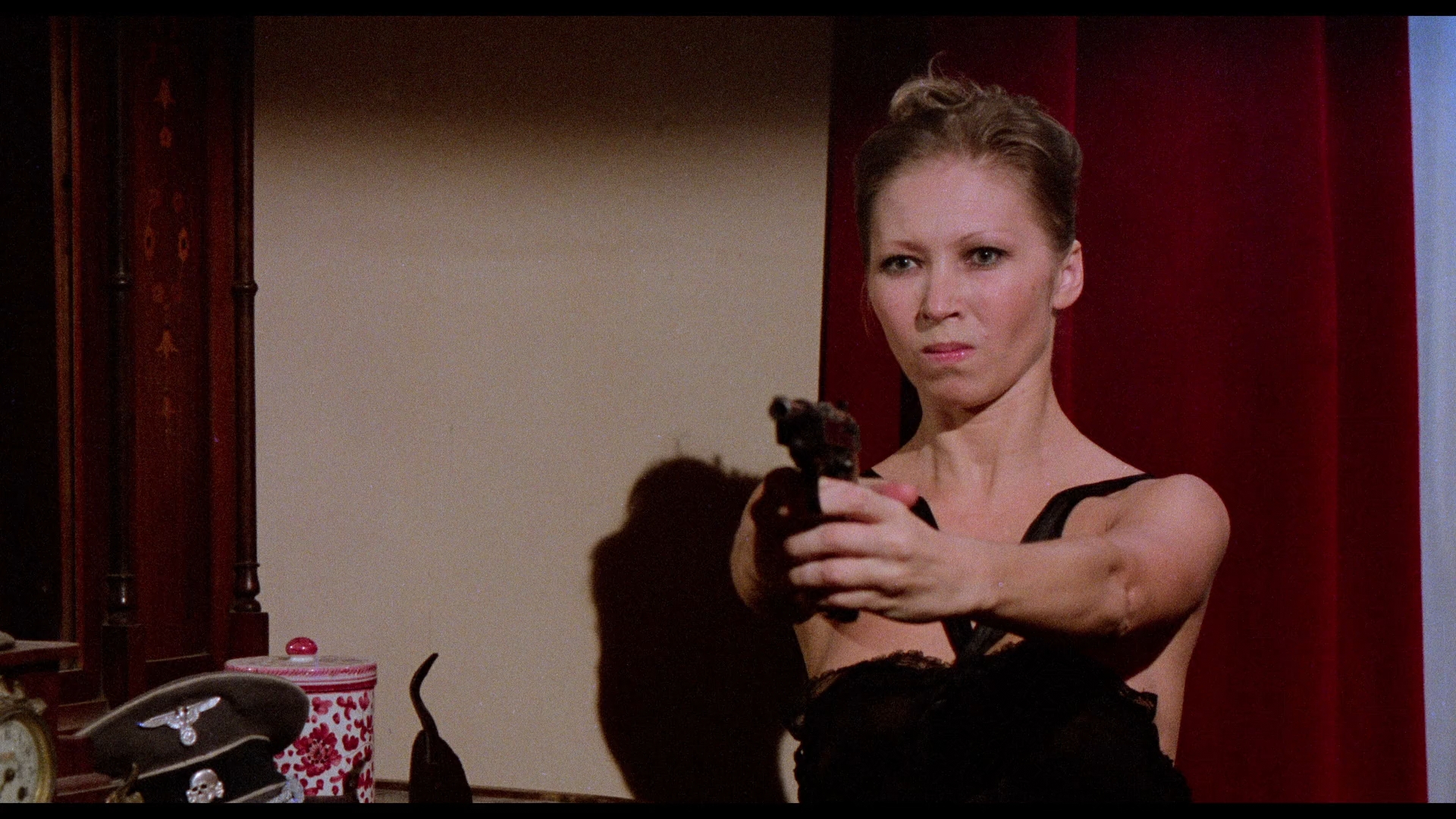 by sneaking goodies out of the cabinets while getting undressed), as the SS officers entertain themselves pretty girls dancing around red-schemed rooms. Of course, Helmut ends up getting too close to one of the subjects (Mirelle) which could spell doom for everyone involved.
