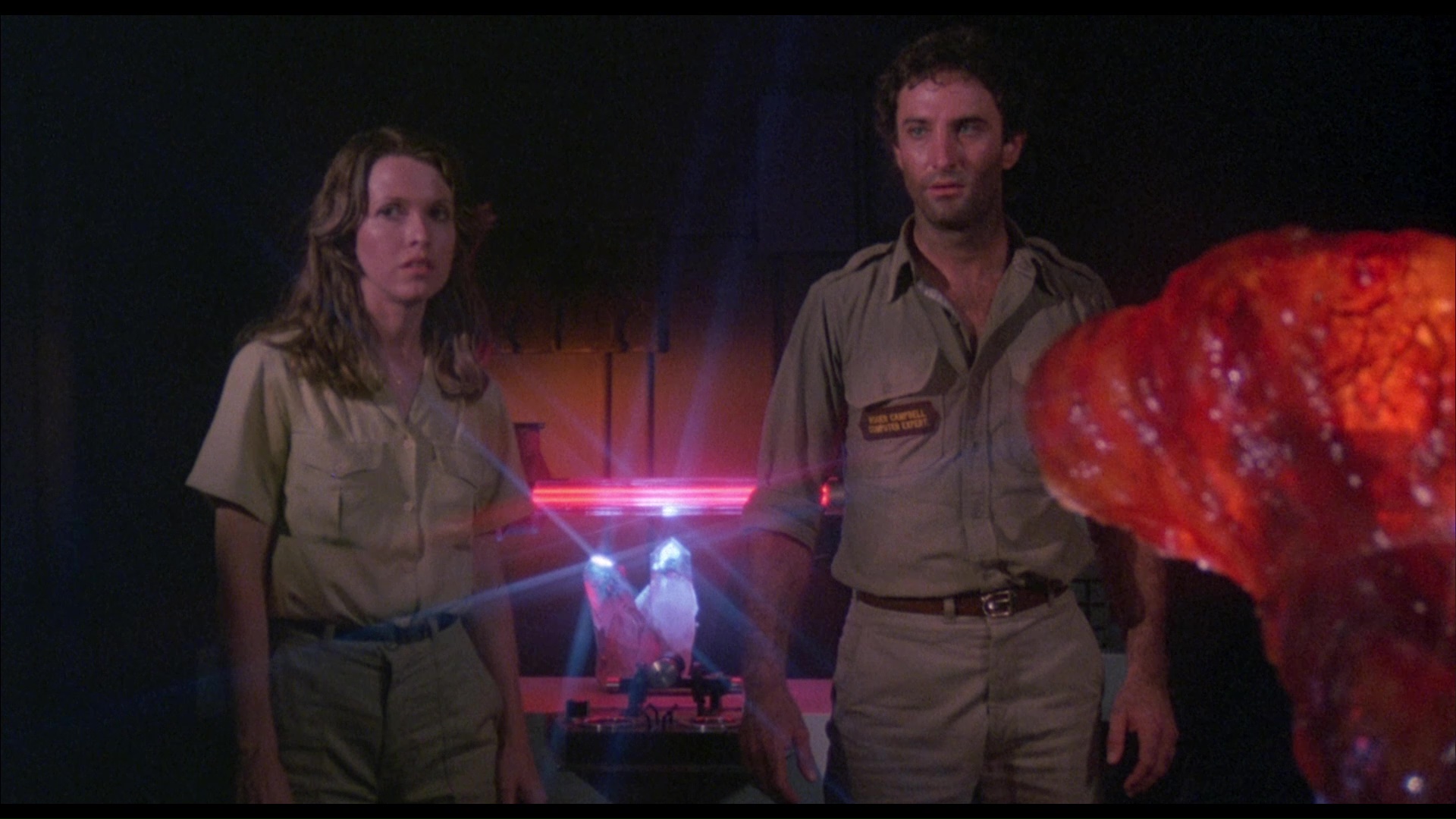 The first widescreen release of the film came from Anchor Bay on DVD in 2003, doing an adequate enough job of presenting the film in better condition than before. There's only so much you can do with the source material (which is very colorful and gaudy but not exactly slick), but the revisit from Kino Lorber in 2017 on separate Blu-ray and DVD editions gives it a good shot with a fresh scan that wrings out about as much vibrancy and detail from the film as possible. The DTS-HD MA English 2.0 audio is fine all things considered, giving the most support to one of the film's stronger assets, its striking electronic score by Doug Katsaros. Extras include the theatrical trailer and bonus ones for other oddities in the Kino Lorber library, namely The Pit, Astro Zombies, Stryker, and Beware! The Blob.