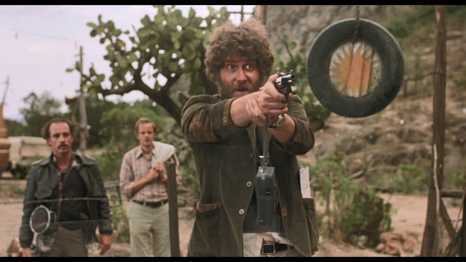 early mention of Apocalypse Now cuts off very abruptly into a bit of dead space, for example), and amusingly, a couple of references have already dated (such as the now former location of Amoeba Records in Hollywood and a mention of the "deceased" Wings Hauser, who turns up briefly here alongside a very young Jonathan Banks). Three new featurettes are included here starting off with actor Richard Masur (11m56s), who explains his own working relationship with Stone, the true meaning of the source novel's title, and his later reunion with Nolte on Under Fire. Speaking of which, that latter film's director, Roger Spottiswoode (who also went on to Terror Train and Tomorrow Never Dies), turns up next for an interview (13m55s) in which he recalls serving as an associate producer on this film and being taken under Reisz's wing at the time after working as an editor for Sam Peckinpah. He also shares plenty of stories from the shoot, including memories of Nolte's impassioned dedication to the project and his character. Last up in screenwriter Judith Rascoe (12m), who chats about her own connection to Stone and her familiarity with the real-life scene involving writer Ken Kesey that inspired a large portion of the book. She also goes quite a bit into the writing process, which involved compressing the book down as much as possible while retaining all the dialogue they could. The theatrical trailer is also included in SD along with bonus ones for Trackdown, 9/30/55, Rollerball, Hell Camp, The Dogs of War, and, uh, The Norseman.