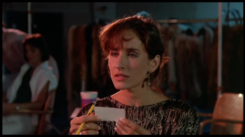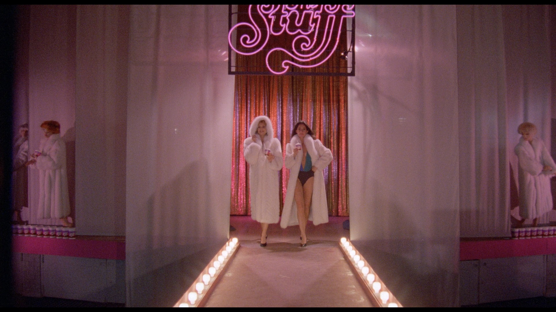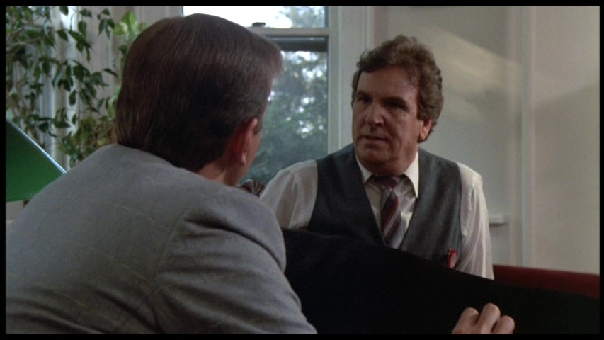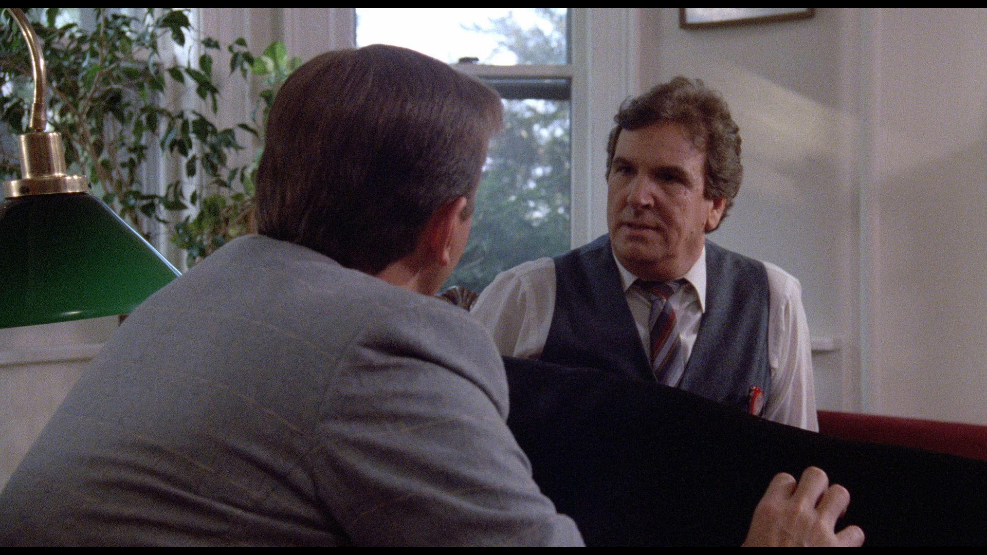 But wait! Since this is a two-disc set, you also get a Blu-ray featuring a pre-release version of the film clocking in at a much longer 118 minutes. This print apparently surfaced by surprise and represents Cohen's initial cut delivered to New World, which he was begrudgingly forced to cut down and rescore. Though the gist of the film is the same, the experience is quite different with many scenes extended and shuffled around including a great Peller-Vigoda commercial placed at the beginning. There's a lot of expansion for the Moriarty-Marcovicci romantic relationship here including a lengthy bedroom scene, and the ending plays out differently by dropping the stinger epilogue and instead closing on a more clear-cut note. The presentation here is obviously from a print but looks quite nice all things considered, again with 1.0 LPCM mono audio with optional English SDH subtitles.