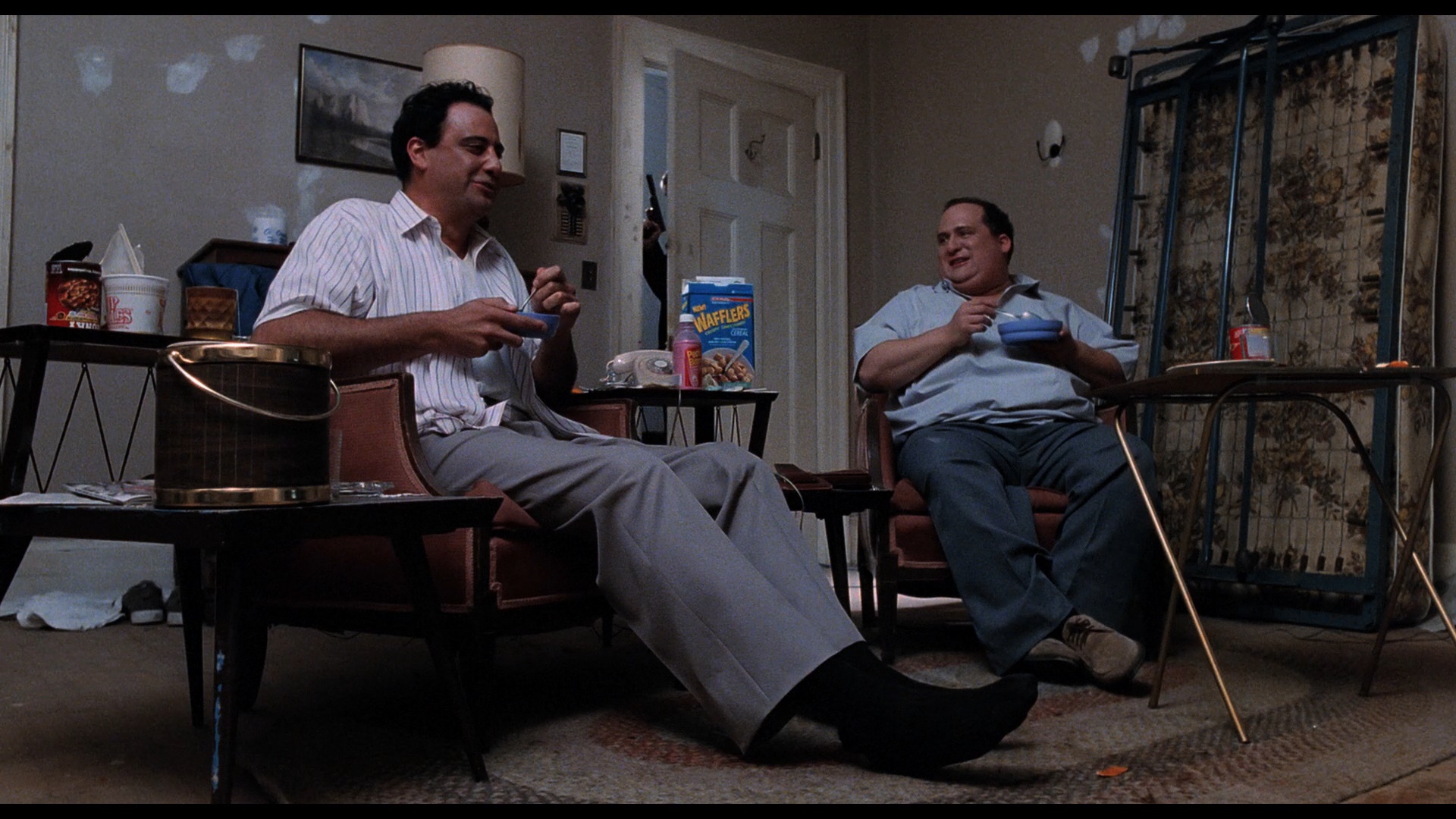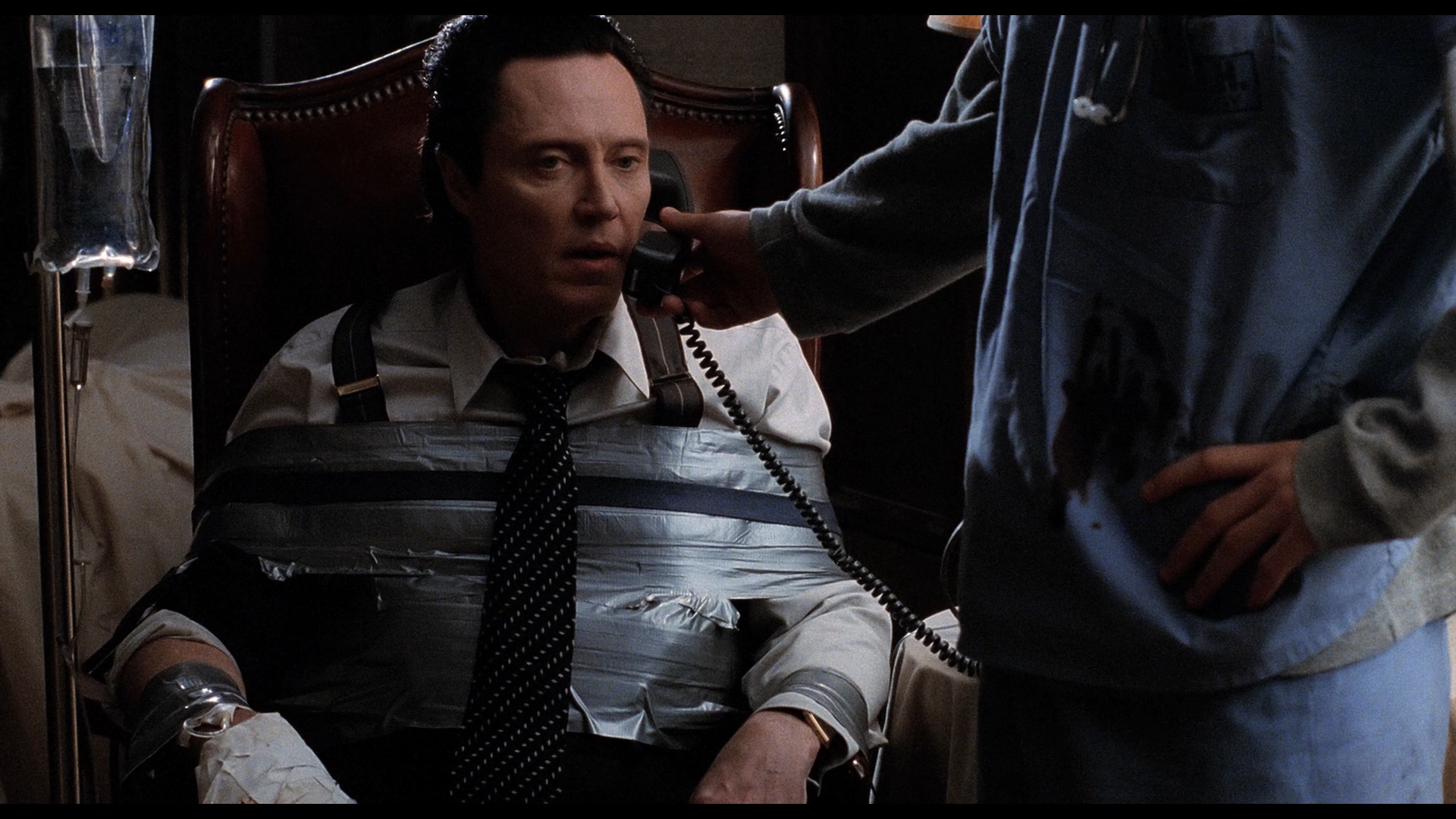 but isn't tremendously different from the 2.0. The commentary, alternate ending featurette, and trailer (with optional director intro) are ported over here, and you also get a new HD recreation of the storyboard comparison (1m10s) plus a quick behind-the-scenes comparison (1m32s) for the home security patrol sequence, a sound design comparison for the car abduction showcasing multiple audio options to showcase the mixing process, a German trailer, and a U.S. TV spot. Four completely new interview featurettes are also included, starting with a new chat with O'Fallon (19m3s) about the road to making this film starting with his gig on the creepy single-season show American Gothic, getting the actors in gear with a "pick-up basketball" approach to the script following Walken's lead, and building a rapport with Leary over those boots. Additional interviews with cinematographer Christopher Baffa (30m24s), Rice in conversation with O'Fallon (47m40s), and editor Chris Peppe (12m48s) offer a more diverse snapshot of the film including recollections about the influence of the paintings of Dutch masters, the mechanics of shooting the scream-filled tunnel abduction, the demands for star vehicles at the time, the casting process, the moving of the comedic elements closer to the beginning, the role of Graeme Revell's score, and the disappointment of the theatrical release's timing.