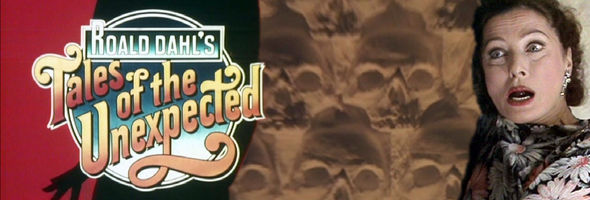 in a variety of volumes like Kiss Kiss, these mixtures of dark humor, horror, and fantasy were first brought to the public via TV anthology shows in the 1950s. Eventually Dahl decided to steer the ship himself and hosted a nearly decade-long series, Tales of the Unexpected, with approved adaptations of his tales providing most of the material. Hosting each episode from a cozy armchair in a drawing room, he offers anecdotes and insights into each story before the curtain rises; as the colorful opening credits might suggest with its collision of flames, undulating women, and gambling imagery, this show is quite difficult to classify but could best be desribed as a series of mordant vignettes all more of less offering a mystery or suspense narrative.