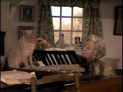 merriment of any kind) has now been preserved as a functioning brain, complete with sensory attachments. Susan George takes the helm for a remake of the famous "Lamb to the Slaughter," in which a murderous wife must dispose of her unorthodox weapon. In "The Landlady," a young man arrives at a boarding house and finds the genteel proprietor (Siobhan McKenna) so welcoming it's almost... sinister. Surprisingly bland considering its cast, "Neck" features Joan Collins as an unfaithful wife who puts herself in a tender spot at the hands of her husband (Michael Aldridge) and his butler (John Gielgud). Better is "Edward the Conqueror," in which a dotty woman (Wendy Hiller) is convinced her cat is the reincarnation of composer Franz Liszt - much to the consternation of her husband (Joseph Cotten). In the first of many gambling/con-related stories, "A Dip in the Pool," Jack Weston plays a boorish liner passenger who wagers his entire fortune that the captain has overshot on his estimate for the next day's travel... and goes