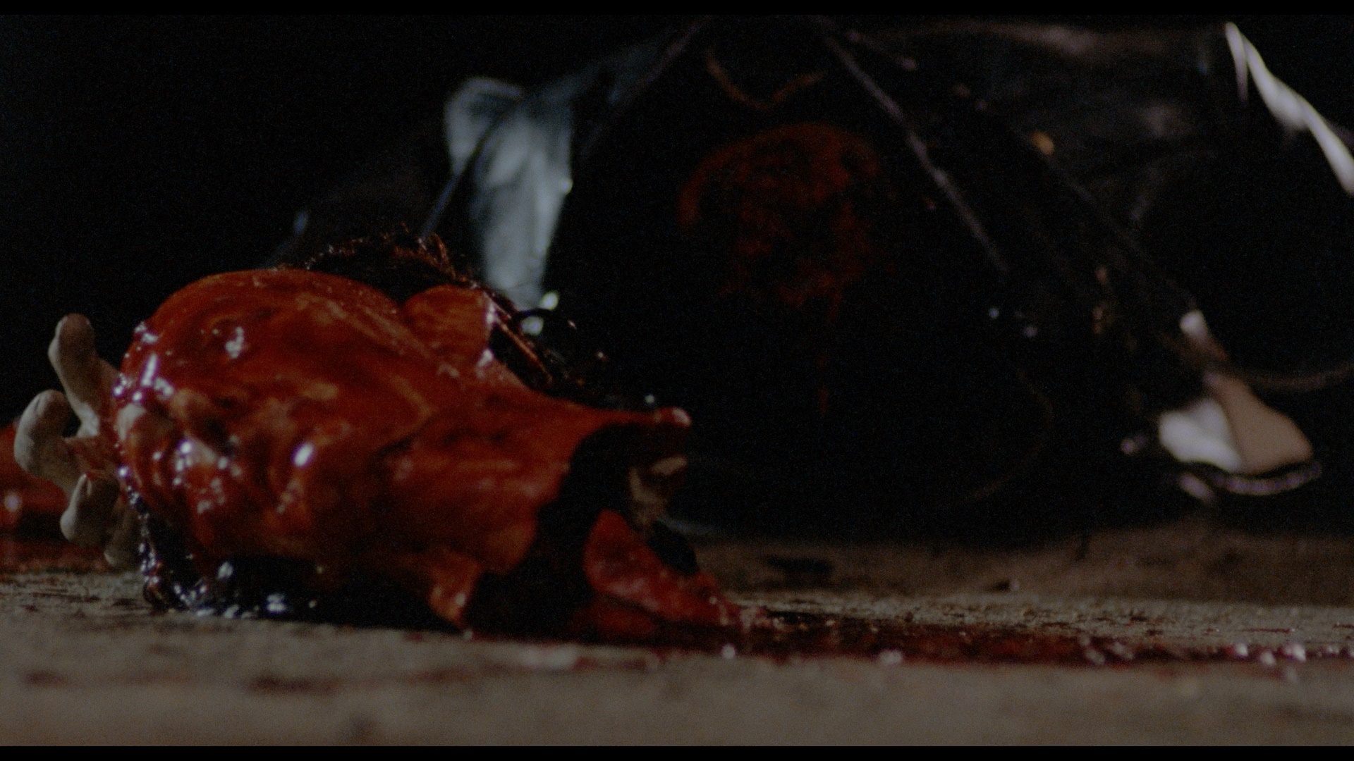 growing up on a farm led to his treatment of wet gore effects here. He also explains the reason for the name Tammy vs. Tanny confusion when it comes to the film's title and main character name (and he even touches on a similar situation with the ending of The Ice Pirates) and the convoluted history behind the special effects including some work by John Carl Buechler. Then Richards has a great time reminiscing about the film in "A Blast from the Past" (11m31s) including the challenge of running around Calabassas in red heels and the very happy times she had on the set; her enthusiasm for the film is really infectious here, and it really makes you wish she'd turn up in front of the camera more often these days. In "Having the Guts" (12m12s), actor Sean Whalen discusses the night shoots for the big party scene, his love for Mac and Me, the wrap party at Richards' house, and other odds and ends from the shoot. Finally "A Testicular Stand-Off" (25m7s) with Pilgrim is easily the most entertaining of the interviews as he reveals his initial reaction to the script, the sudden rewritten fight scene between him and Walker that required them to "grab each other's junk," the medical emergency that struck at the end of that same scene, and tons of other crazy stories from the set. Oh, and you can also watch the gutted PG-13 version (82m36s) in all its open matte glory, straight from an Imperial VHS tape, just to see how this plays without blood splashing all over the place.
