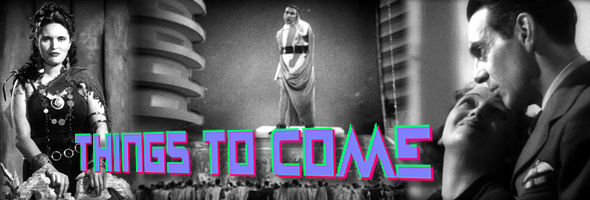 While Things to Come has never been a "lost" film per se, decent versions have been hard to come by. Video collectors have been forced to make do with horrendous public domain prints over the years, including a certain unmentionable DVD release during the format's infancy. Relatively speaking, the Wade Williams release from Image is a feast for the eyes, offering nice contrast (at last!) and crisp detail. Some print damage and fluttering is evident from time to time, not to mention a few nasty instances of warping during the last reel, but the presentation is still a revelation all the same. Even more welcome is the cleaned up soundtrack, which is smooth and always intelligible in marked contrast to the muffled noise of all prior video versions. While nothing has been trimmed out, the running time curiously clocks in at 93 minutes rather than the standard 97, indicating this may have originally been mastered in PAL. The disc also includes the original 1936 U.S. theatrical trailer, which is in watchable but unspectacular condition. For more information on this film, DVD Savant has written two interesting articles covering the film's political subtext (click here) and material trimmed out of the final cut (click here).
