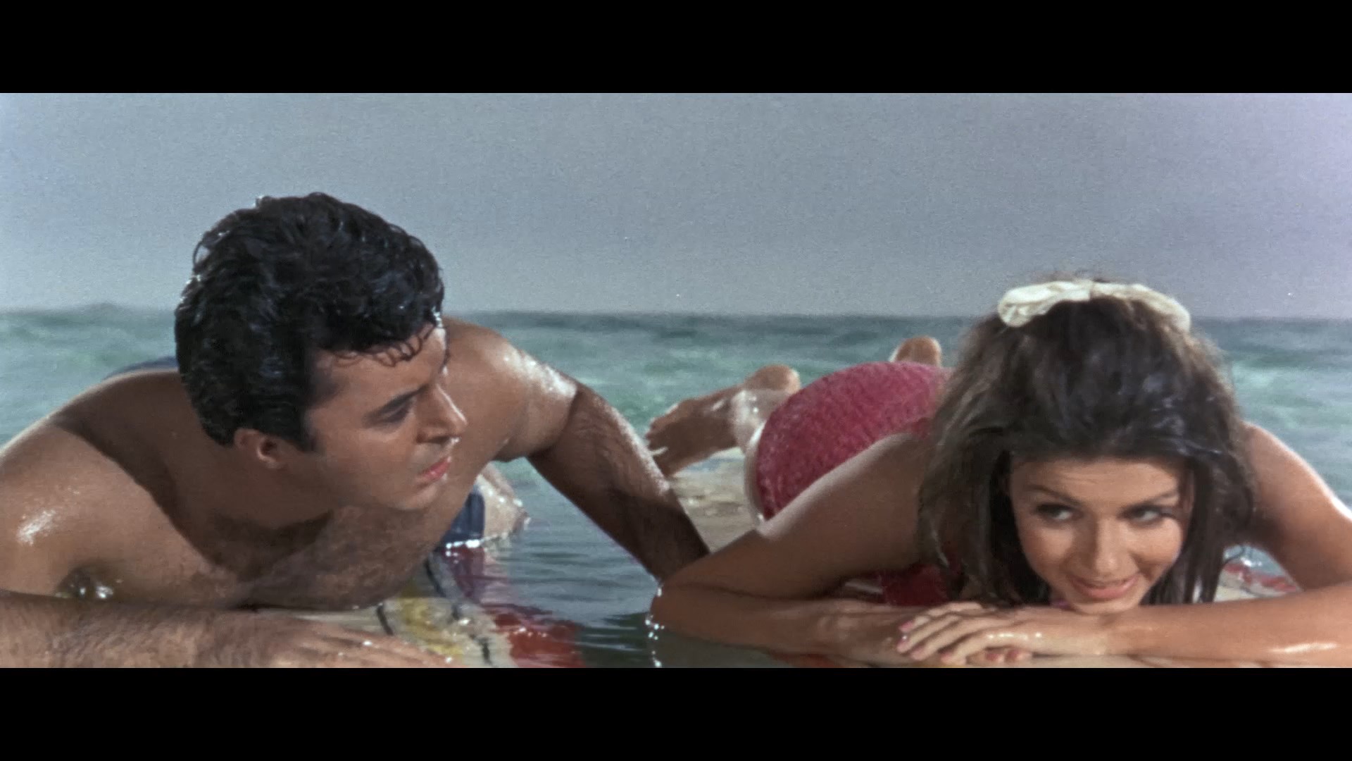 letterboxed upgrade later turned up in the '00s on MGM HD, which at least made the film much easier on the eyes. That means it didn't get a home video release of any kind until 2021 when Scorpion Releasing issued it on Blu-ray and DVD via Kino Lorber. As usual it's a solid MGM catalog scan with very bright, punchy colors and good detail that doesn't scrub away any of the natural grain where it's needed; if you've seen the (far too few) earlier beach party films out on Blu-ray, you'll have an idea of what to expect here. The DTS-HD MA English 2.0 mono track (with optional English SDH subtitles) sounds fine for a fairly typical, basic sound mix from the era with the songs coming off dynamic enough to hold your interest. The scope theatrical trailer is also included (in really nice shape) along with bonus ones for Slow Dancing in the Big City, Johnny Cool, The Tamarind Seed, and The Sailor Who Fell from Grace with the Sea, which would be the most perverse beach co-feature for this movie imaginable.