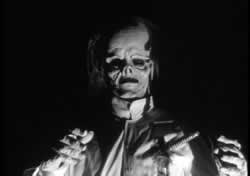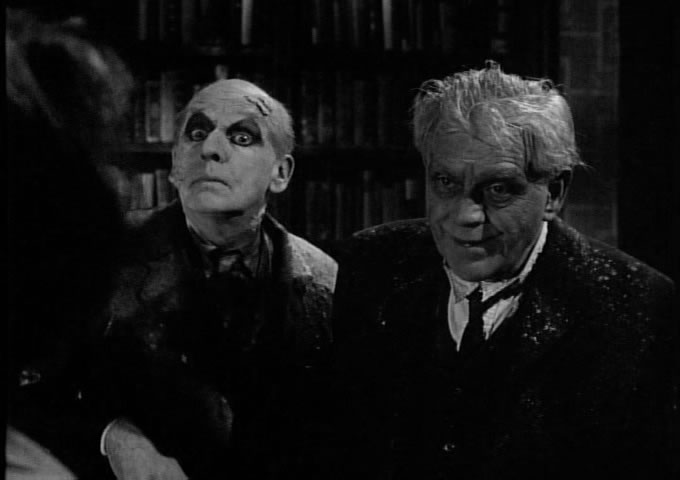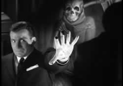 That same year, another anthology appeared on NBC entitled Thriller. Hosted by horror legend Boris Karloff, it began as an hour-long suspense program for its first six episodes, but with the seventh, "The Purple Room" (shot at the same house used in Psycho), the tone began to change thanks to a jolting mid-episode shock that became the talk of schoolyards and water coolers the next day. Thing settled back into standard suspense mode for another seven episodes or so, all of them well above average but hardly terrifying, until the series took a severe 90-degree turn with "The Cheaters," an overt supernatural yarn about a pair of glasses which enable the wearer to see the true nature of anyone around them. Just be careful you don't take a peek into a mirror... The chilling make-up jobs, riveting pacing, and ingenious plot (adapted from a story by Psycho author Robert Bloch, soon to become a familiar name on several episodes) made it an instant classic and kicked off a string of wildly unpredictable horror tales that made it an instant favorite among young, horror-hungry viewers. Karloff's deliciously dramatic introductions kept the show's tone consistent, and he even appeared in a few episodes including "The Prediction," "The Last of the Somervilles," "Dialogues with Death," "The Premature Burial," and the fondly-remembred "The Incredible Doktor Markesan," in which he portrayed a sinister recluse whose newly married nephew (Bewitched's Dick York) becomes entangled in a grisly secret involving