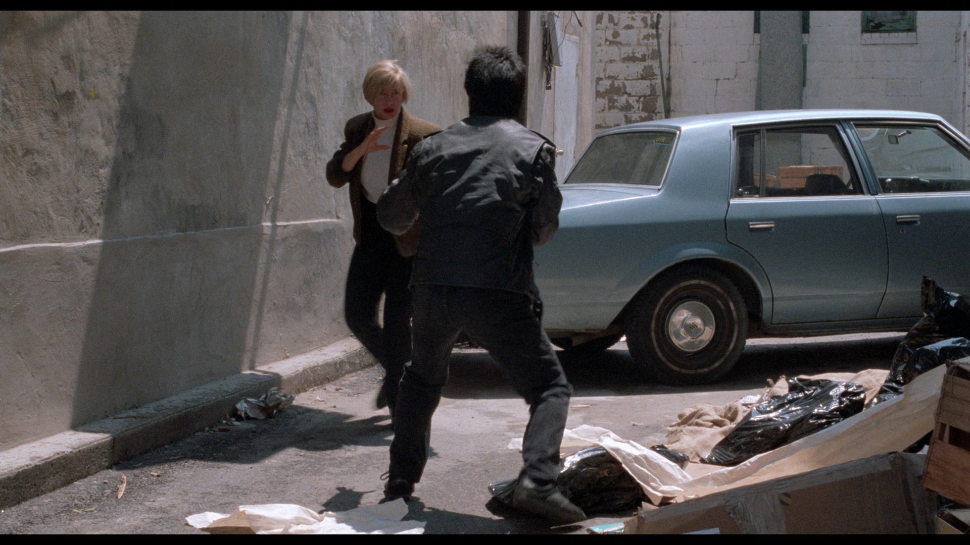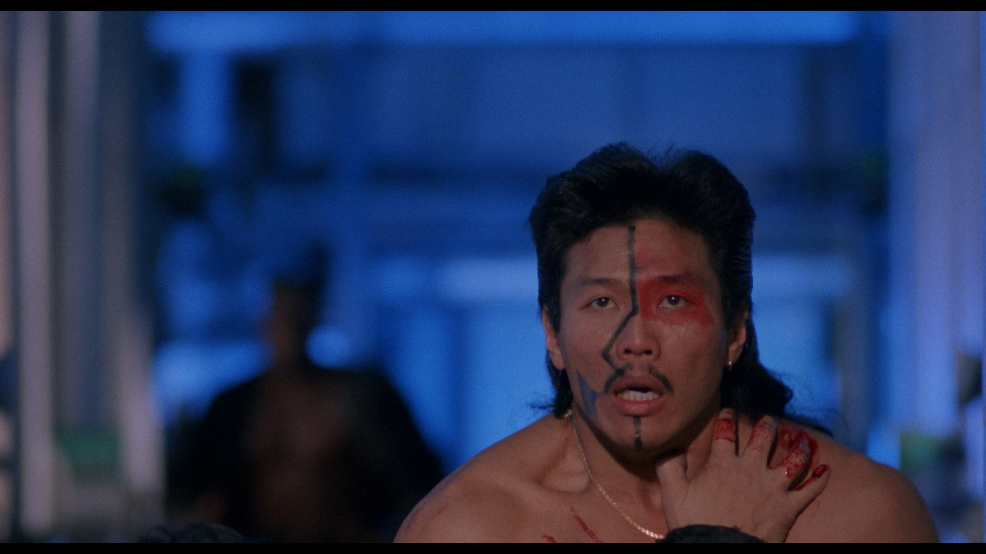 Though the film is set up as a murder mystery for the first half hour, it shouldn't be much surprise when you look at the billing that a sinister-looking Bolo Yeung is tied to the crimes as he goes around scouting the big martial arts tournaments. Along the way you get a lot of fight scenes, pounding synth music, clunky cop dialogue, and Rothrock being a great scene stealer as always. Plus you get extra treats like a karate tournament where Merhi gets to show off his machismo by grabbing boiling-hot chains, sticking fighting, bloody finger scratching, neck snapping, and a big showdown in a warehouse with cardboard boxes flying all over the screen.