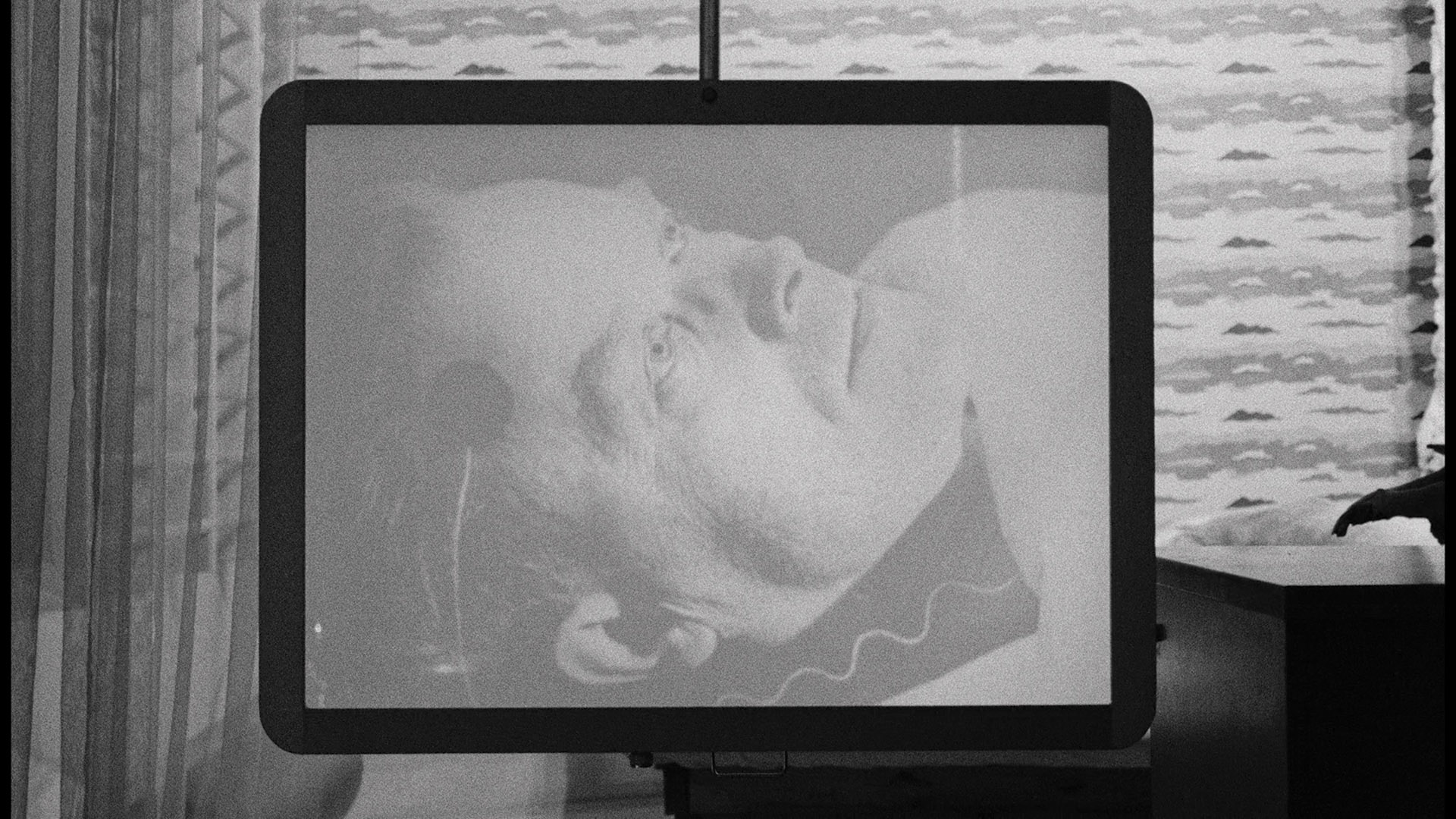 of clips of course. You also get two Jarva shorts starting with 1969's Pakasteet (Frozen Foods) (11m50), which uses the shooting of a TV commercial as the framing device for a cheeky look at the production and marketing of freeze-dried food. (Especially peas. Lots and lots of peas.) In a similar vein, 1968's Computers Serve (Tietokoneet palvelevat) (14m37s) takes a whimsical look at the role of modern computers in everyday life, especially banking, including lots of coverage of punch cards and disks -- complete with an aggressive electronic soundtrack. Both shorts (shot in color) are newly restored and look superb. Also included are a 3m57s deleted scene from an SD source showing a chain of conversations about progress, a deleted song called "The Swallow Tower" performed by Otto Donner (3m37s) for a scene at a Japanese restaurant, and the original trailer. The package also comes with an insert booklet featuring a new essay by Ville Suhonen of the Risto Jarva Association about the film's balance of visual playfulness and social statement, plus extracts from Jarva's essays.