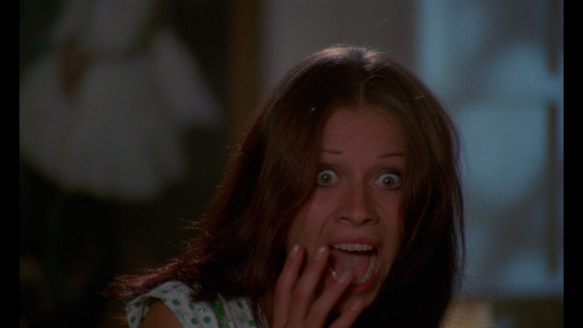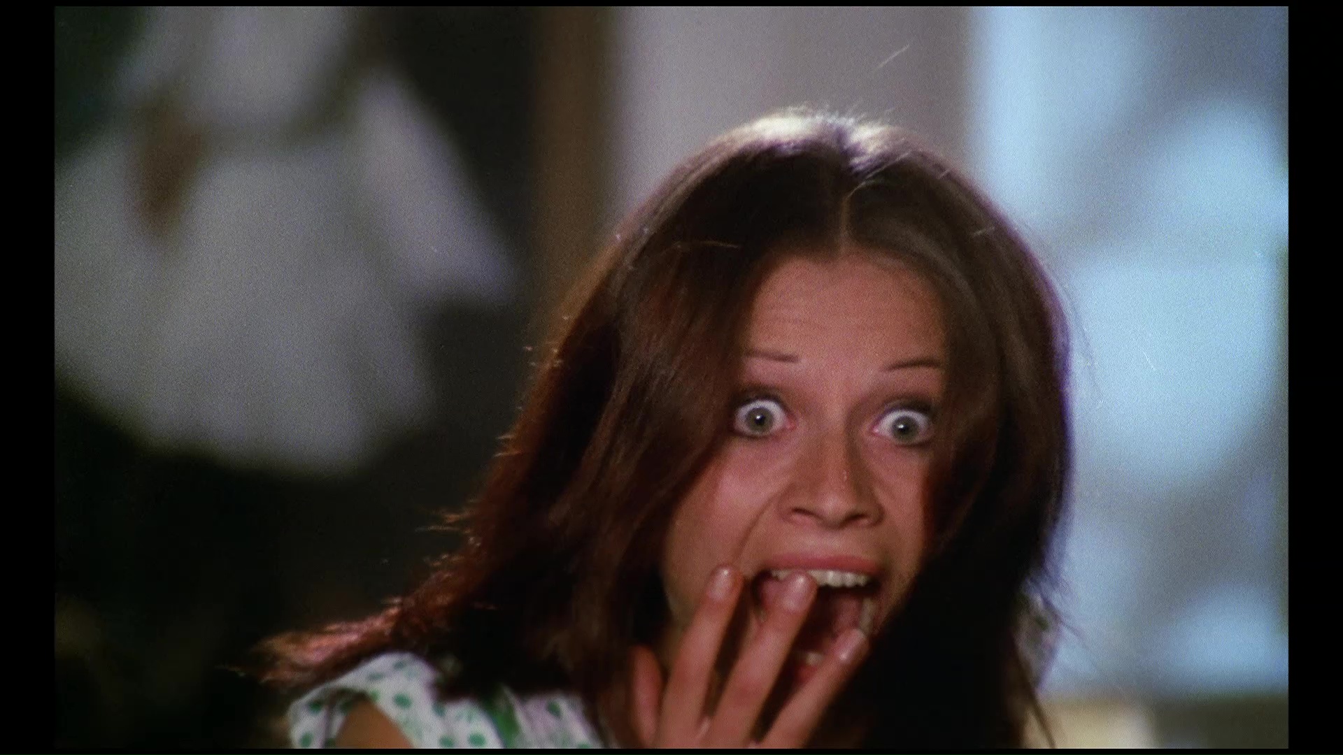 In 2024, Arrow revisited Martino's film for a 4K UHD release in the U.S., featuring the 94-minute Italian and 90-minute English export cuts of the film presented in HDR10-compatible Dolby Vision. It's touted as a brand new 4K restoration, done from the ground up here with color timing adjustments throughout ranging from subtle to dramatic. The result is quite spectacular in playback with a far wider gamut of colors on display and, most significantly, a greater level of legibility during the darker scenes. In particular the woods stalking scene, though still appropriately nocturnal, is much easier to make out than ever before. Frame grabs in the body of this review are from the UHD (though 1080 at the moment) with comparisons below. The LPCM 1.0 English and Italian tracks still sound great and feature the same audio and subtitle configurations, as well as title sequences for both languages (and the U.S. credits as an extra). All the extras carry over here-- audio commentary, the interviews (Sergio Martino, Luc Merenda, Ernesto Gastaldi, Federica Martino, Mikel JJ. Koven), the 2017 Q&A, and the Italian and English trailers, plus the same booklet.