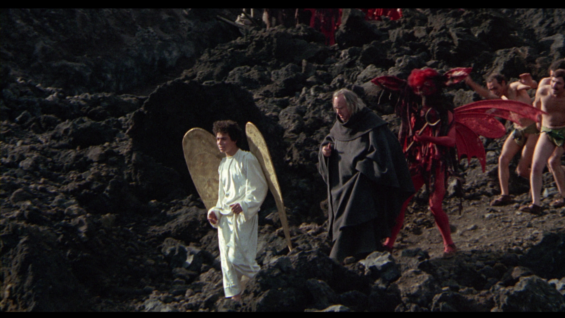 Critically derided as the weakest entry in the series, The Canterbury Tales suffered most from being seen in agonizingly terrible home video editions and really bottom-drawer prints, with even the Museum of Modern Art's archival edition looking dull, dreary and colorless. The same goes for early home video editions, from the grimy Water Bear transfer in America to the equally worthless versions issued around the world. As such, the Blu-Ray will be the biggest shocker for anyone familiar with the film; to call it an utter revelation is an understatement. The cinematography by Tonino Delli Colli (who also did The Decameron but sat out the third film) is remarkably beautiful, with fantastic landscape photography worthy of classic paintings. The vivid colors also bring out the vibrance and imaginative touches in Danilo Donati's costumes and Dante Ferreti's sets, which were impossible to appreciate before. And of course, the finale is even more over the top thanks to the clarity of high definition. No matter what one thinks of this film, their opinion is bound to improve after seeing such a radical improvement