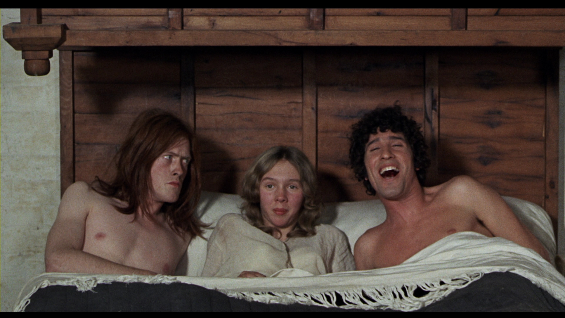 Virtually chucking out the pilgrimage aspect apart from a quick nod at the beginning and end, the film instead features Pasolini as Chaucer amusing himself by writing the stories as told by a colorful cast of characters. A nobleman (Griffith) is struck blind after taking on a much younger wife (Chaplin) in "The Merchant's Tale;" the devil (Citti) reveals himself to a debt collector in "The Friar's Tale;" a genial medieval Charlie Chaplin type (Davoli) winds up in serious hot water in "The Cook's Tale;" a student (Thomas) decides to bed a pretty married woman (Runacre) while tricking her husband a flood is coming, but their crude post-coital antics complicate matters in "The Miller's Tale;" the crimson-clad Wife of Bath (Betti) sets her sights on a startled parson (Doctor Who's Baker, doing a nude scene no sane person ever asked for) in hopes he won't die like the rest of her husbands; two students get back at a landowner who tries to rip them off in "The Reeve's Tale;" three rowdy friends find a treasure after carousing at a whorehouse but learn the hard way that greed is the root of all evil in "The Pardoner's Tale;" and the scatological "The Summoner's Tale" finds a dying man playing a prank on a friar, leading straight into the now-legendary final minutes in Hell, one of the most unforgettable, jaw-dropping scenes ever committed to film.