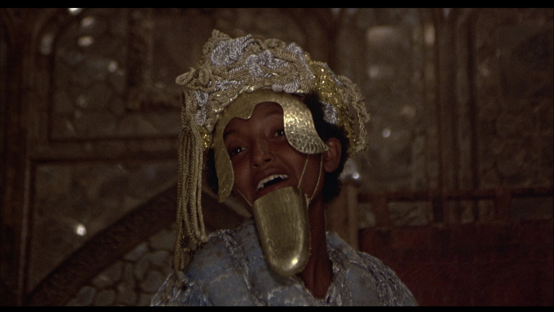 Both Blu-Rays address an issue which has plagued the film since its release: the running time. A screening of Pasolini's first cut at Cannes was 155 minutes, but producer Alberto Grimaldi persuaded him to trim it down by 25 minutes. A reel of deleted footage clocking in at 21 minutes was subsequently issued on a French DVD, but it's presented here in HD as well with Morricone's score filling in for the lost audio. The film's overlapping structure (which led to frequent comparisons to The Saragossa Manuscript) dictated that a story couldn't be simply chopped out; instead, the majority of the cut footage is parallel action during the Princess Dunya segment (the penultimate story) which then continues with an imprisoned Prince Tagi escaping into a small but interesting battle scene in the mountains and encountering his beloved again in drag. It's obvious why this was cut as it could be seen as redundant in the scheme of the entire film (we've already spent plenty of time with the whole king-in-disguise story thread), but at least some of the scenes should have been left to close out the Dunya story more smoothly than its abrupt finish in the final cut. In any case, it's great to finally have this footage back in any form; the remaining time discrepancy may also be due to the original intermission (which came right after the aforementioned castration scene, ensuring some more sensitive viewers may have opted to not return for the rest of the film); the break is missing here but can be seen on the old Water Bearer transfer if you're curious.