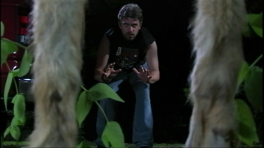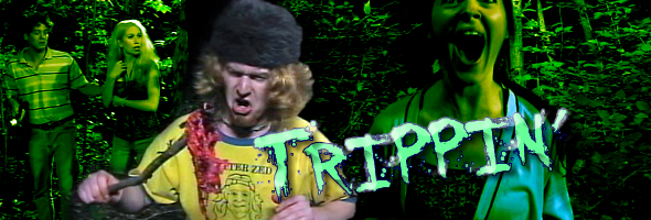 Cue the tale of six buddies heading out to the woods, armed with enough illicit refreshment to fill up the Mystery Machine. As they chit chat, get baked, hook up, and wander around outside the woods, they begin to feel that something's amiss when they start finding bloody little surprises lying around, such as a maggot-infested animal carcass and bits of human bodies. On top of that, there may be a legendary local psycho on the loose. But how much of it is real, and how much is in their own drug-addled heads? Either way if you try to guess where it's all going to lead, you'll probably be wrong. From a certain perspective you could almost think of this as a much more comedic (and thankfully better) pot variation on the now-forgotten horror film Shrooms, mixed with a little Tucker and In an ambitious movie, Camp's DVD release comes spread out over two discs with the main feature obviously taking up most of disc one. The anamorphic transfer is obviously limited by the very scrappy nature of the video shoot, who looks like it was done in SD by all appearances. It's colorful and bright enough (with a deliberately artificial sheen in many Disc two is devoted entirely to Snively's short films, which have made the rounds at various cons and horror fests for the past few years. Some of them are basically homemade quickies, though the most elaborate of the bunch, "Death in Charge," is technically on par with the main feature and serves as the probable highlight of the set. On the other end of the spectrum you get the gory camcorder diatribe mentioned above, "I Spit on Eli Roth," a sentiment probably shared by anyone who's seen him try to act. Anyway, it features some female filmmakers deciding to unleash their frustration with his films through bodily harm. Also included are the musical pastiche "Teenage Bikini Vampire," the goofy "Confederate Zombie Massacre" (which also gets a separate and surprisingly long making-of featurette, "CZM! The Making of a No-Budget Zombie Flick"), "Last Seen on Dolores Street," the Universal horror salute "Raven Gets a Life," and a bunch of trailers for the label's other releases like Shock-o-Rama, Red River, and Bacterium.