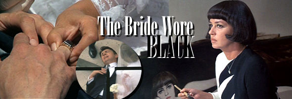 Despite the essentially downbeat subject matter, Truffaut keeps the film light and enjoyable thanks to his usual quirky supporting characters (including his trademark skill with child actors), a deliciously macabre score by the renowned Bernard Herrmann (his second for the director after Fahrenheit 451, though they clashed over this project), and the compelling presence of Moreau, who uses her elegance and marvelously expressive face to compensate for the fact that she's clearly too old for the part. The screenplay by Truffaut and Jean-Louis Richard (Breathless) was derived from a novel by Cornell Woolrich (under the pen name of William Irish), who also provided the original short story used for Rear Window. Truffaut twists the plotline severely to conform to his own cinematic sensibilities, including a completely different resolution. (Note: spoilers ahead!) Woolrich's novel pulls a chilling reversal by revealing that Julie has been tracking down and murdering completely innocent parties, while the bridegroom's death was in fact caused by a different and highly unlikely character omitted from the film. Truffaut's alternative is, in its own way, just as diabolical and in some respects more satisfying, with an ingenious final shot (and sound effect) providing the perfect punctuation. MGM's irresistibly low-priced DVD of The Bride Wore Black is obviously derived from the same master used for their previous widescreen laserdisc edition. Fortunately the original transfer was quite satisfying, and the DVD looks roughly one video generation better in comparison. It also sports the added bonus of removable (and extremely large!) white English subtitles, as well as optional French and Spanish subtitles. Image quality is generally smooth, colourful, and pleasing, with print damage kept to a minimum. The two channel mono audio sounds robust enough, with the combination of Herrmann's score and Vivaldi interludes rendered with all of their musical nuances intact. The DVD also includes the hysterically lurid United Artists theatrical trailer, which makes this look like some kind of sexy spy thriller.