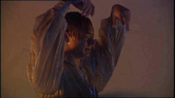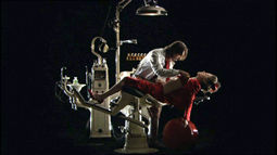 Continuing the clinical lists and organizing of such films as Prospero's Books (basically The Tempest reformatted around a series of library volumes) and Drowning by Numbers (in which the film itself moves literally from 1 to 100), The Moab Story barely offers a linear story and instead becomes immersed in a series of layered images, similar to the approach from Greenaway's Paintbox-happy A TV Dante and The Pillow Book. He even incorporates several of his past films (including designs from The Belly of an Architect, clips from A Zed and Two Noughts, and the Cissie Colpitts archteype from Drowning by Numbers) as elements of Luper's perplexing body of work from a mysterious life spanning the length of the Cold War. How it all ties together is anyone's guess, as this is the only the first part of three films; in any case, it's visually satisfying and utterly maddening to follow. Celebrity watchers will have fun watching the bizarre supporting cast including Jordi MollĂ as a fascist in training, Nigel Terry, and a brief cameo by Deborah Harry. Significantly, this is the first Greenaway film with a completely original music score since his regrettable parting with Michael Nyman, and Borut Krzisnik fits the bill well enough. The performances are impossible to assess; apart from a few hambone Utah accents, the performers mostly drift through the frame, get naked, argue, and beat each other up.