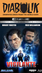 Vigilante first appeared on DVD from Anchor Bay in 2002 in its unrated extended version, which has remained the standard ever since. That release contained a very entertaining audio commentary with Lustig, Forster, Williamson, and actor Frank Pesce, who all obviously get a big kick out of revisiting the film and the wonderfully egocentric Williamson providing the lion's share of memorable one-liners. As with Lustig's other titles, the film then became a