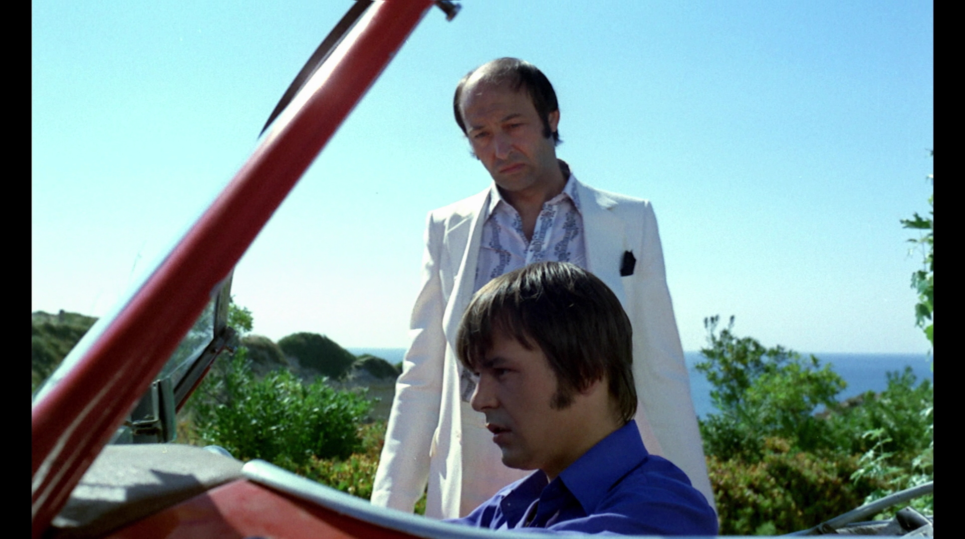 Poor Marianne (Straw Dogs' George) is on the run. Abandoning her job as a go go dancer in Portugal, she hitches a ride with sleazy Sebastian (Sanford), who asks her to marry him after they've been shacking up in London for two weeks. She reluctantly agrees but for intricate reasons winds up engaged to Sebastian's more wholesome and handsome friend, Eli (late British sex comedy staple Evans). It turns out Sebastian's motives have been less than honorable, as he's been scheming to return Marianne to her corrupt ex-judge father (A Lizard in a Woman's Skin's Genn) who lives in exile in a Portuguese hacienda with Marianne's
