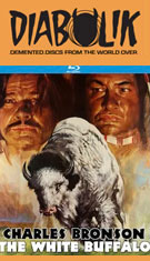 A tough sell at the time thanks to its odd structure and straddling of genres, The White Buffalo spends most of its first half trotting Bronson through an insane cavalcade of character actors like Stuart Whitman, Clint Walker, John Carradine, Martin Kove, Slim Pickens, and Ed Lauter, plus an extended cameo by Kim The White BuffaloNovak in one of her very few '70s roles. For some reason Carlo Rambaldi and other Kong crew members were brought back by De Laurentiis to The White Buffaloengineer the buffalo itself, despite Rambaldi's notorious inability to supply a functioning mechanical King Kong. The first two buffalo appearances (in Bronson's opening dream and the savage attack scene) are actually fairly effective thanks to some fractured editing and the disorienting studio sets, but the seams really show after that with the climactic showdown looking more like a mechanical bull competition at a country and western bar. Despite its ignominious fate in theaters, the film has been a fixture on TV and home video though (including an NBC airing as Hunt to Kill), with MGM issuing it on VHS, laserdisc, and eventually DVD in 2010. An HD master slightly zoomed in to 1.78:1 from the original hard matted 1.85:1 framing first appeared on the studio's MGM HD channel (now morphed into MGM+); that same source was used for a 2015 Blu-ray from Kino Lorber with a theatrical trailer as the sole extra.