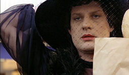 For those unfortunate enough to suffer through Columbia's old pan and scan VHS transfer, Querelle on DVD will look like a different film entirely. Fassbinder uses the entire scope frame to experiment with bizarre angles, distorting lenses, and deeply layered compositions and tableux, while the saturated colors which bleed all over the screen on videotape look more refined and tolerable here. The anamorphic transfer provided by Gaumont most likely comes from a PAL source, and for some reason in 16:9 playback the image looked a bit coarse and noisy (as if suffering from excessive digital noise reduction), while on another widescreen monitor it looked perfectly smooth and glossy. If it looks a little odd on your television, you might want to try another. The end titles sport a Dolby Stereo tag, though the film is presented in mono in both English and French. Davis, Moreau, and Nero provide their own voices, while virtually all of the other actors are very artificially dubbed in a manner that may cause even diehard Italian horror fans to bristle with annoyance. The alternate French track (which can be played with optional English, Spanish, or French subtitles) is a little easier on the ears, but it also suppresses or eliminates altogether most of the sound effects and music. (The UK disc from Second Sight is letterboxed but only retains the English dubbed option.) This unrated edition also runs about two minutes longer than the US edition; while there's still virtually no nudity in the film per se, a few sequences (such as Davis' forced manual stimulation of another sailor at knifepoint) are more explicit and may not have been faked. Inexplicably, the US disc's only supplements are trailers for The Opposite of Sex and sex, lies and videotape, which might give you an idea of where the marketing people are coming from.