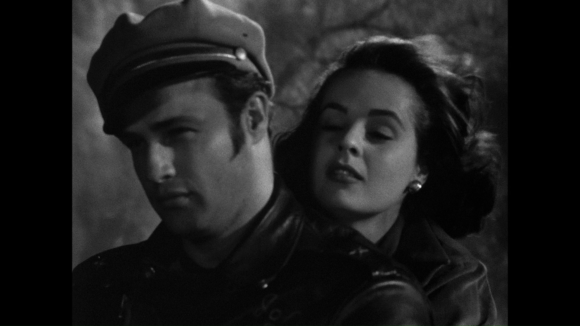 The Wild One first appeared in DVD in 2000 with only a theatrical trailer as an extra, then again in 2007 as part of Sony's Stanley Kramer Film Collection (along with Guess Who's Coming to Dinner, Ship of Fools, Member of the Wedding, and The 5,000 Fingers of Dr. T. (Needless to say, it's not the most representative selection of Kramer titles.) Extras on that release include a solid audio commentary by Jeanine Basinger (who lays out the film's genesis with Kramer and its odd path to bringing an unbelievable real-life story to the screen with a lot of narrative embellishments), an intro by Karen Kramer (1m23s), a collection of interviews with real-life witnesses to the original biker invasion in "Hollister, California: Bikers, Booze and the Big Picture" (27m49s), and "Brando: An Icon is Born" (18m38s), which features Garry Marshall, Dennis Hopper, Taylor Hackford, and Elizabeth Ashley waxing nostalgic about the impact of the screen legend's presence and appearance in this film. The title made its Blu-ray debut in Germany from Sony in 2013, porting over the DVD extras and adding the mostly off-topic "Stanley Kramer: Man's Search for Truth" (which is more appropriately included now on all of the Blu-ray releases of Guess Who's Coming to Dinner). Two years later, a no-frills U.S. Blu-ray was issued by Mill Creek, featuring the same immaculate Sony-sourced HD restoration with DTS-HD MA English mono audio.