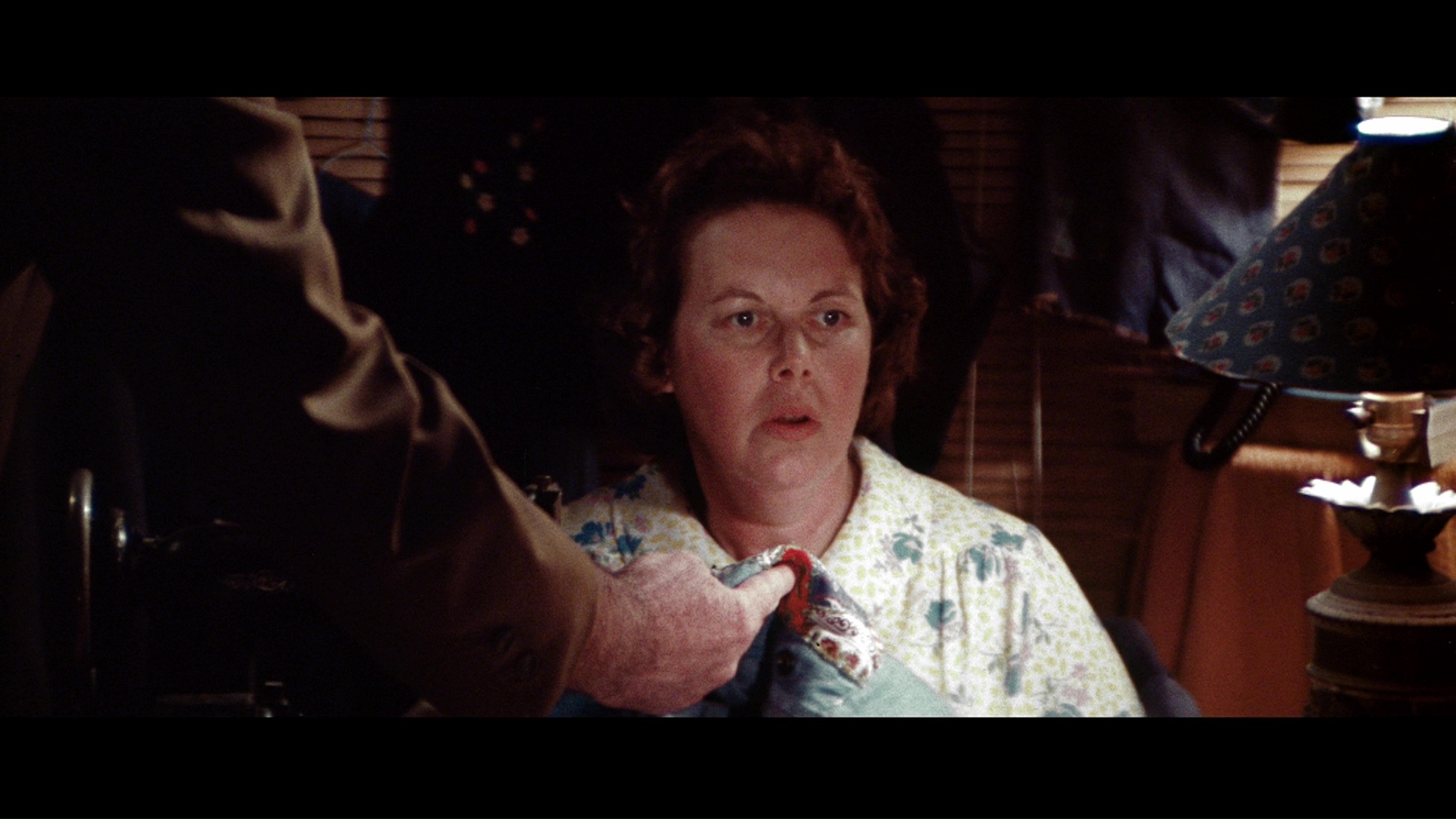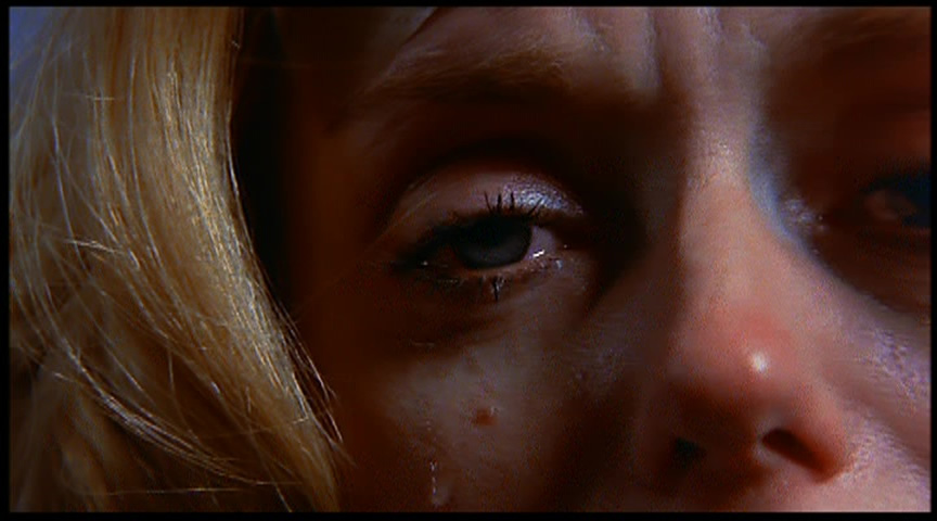 widely available film out of the bunch on home video, The Premonition hit VHS from Embassy in the '80s and made the leap to DVD in 2005 from Media Blasters under its Guilty Pleasures banner. The widescreen transfer was essentially fine for the time (more on that in a moment) with English and Spanish mono tracks plus a reworked 5.1 mix. Extras included a direor's commentary, a photo gallery, the theatrical trailer, over three minutes of TV spots, a 16-minute interview with the late Lynch, a 6-minute interview with Schnitzer, and a batch of bonus trailers (Blood Sisters, Banned, The Oracle, Just Before Dawn). The Arrow release carries over the commentary, trailer, TV spots, and two interviews, while ditching the 5.1 remix in favor of a more faithful LPCM mono version. What's fascinating is how radically different the transfer is, with significantly more image info on the sides (how much seems to vary from reel to reel as this was shot open matte and composed at the telecine operator's whims) with very different, more centered framing in many scenes. The color timing is also different with more natural flesh tones compared to the blown out ones in many scenes on the DVD, and the flashes of Sheri's visions now have stronger tinted hues (like the light blue one in the frame grab on the left) compared to the nearly desaturated ones seen on the DVD. All in all it's a much more satisfying and impressive viewing experience.