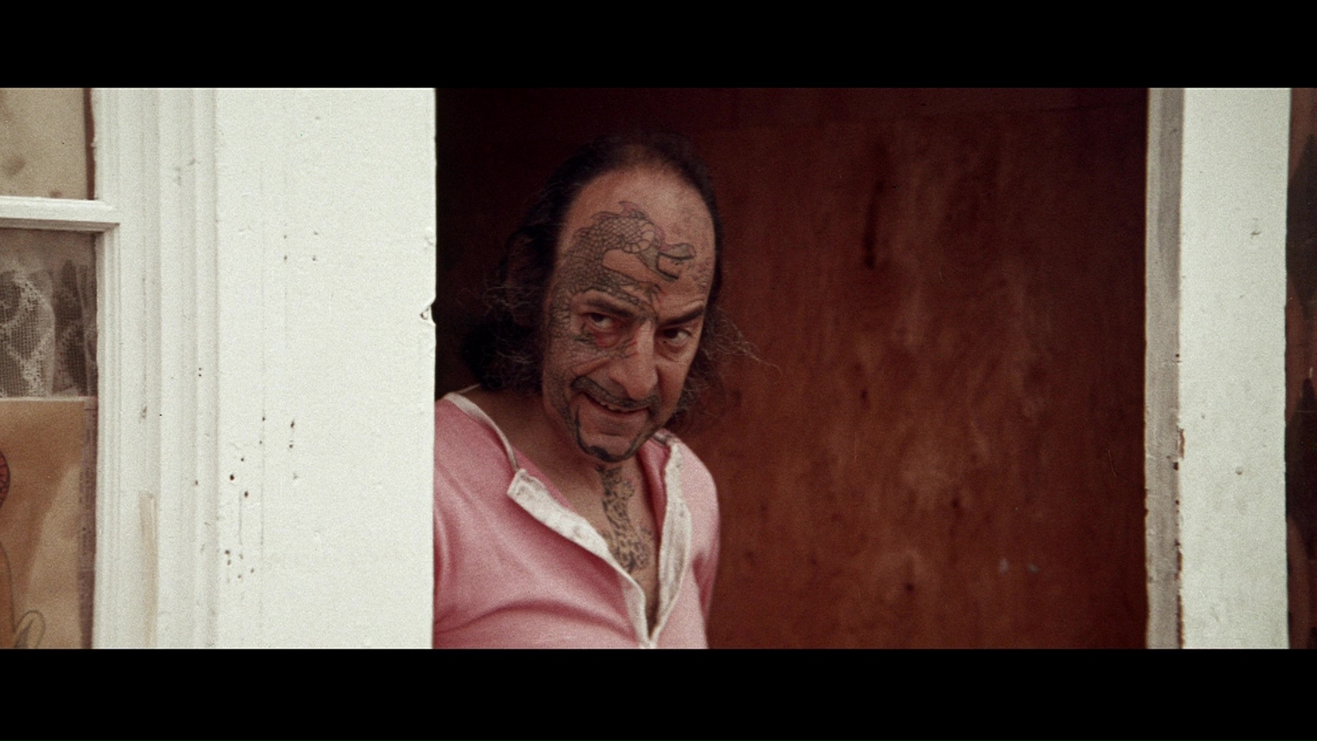 courtesy of producer Richard Grosser, and how they were given carte blanche with both the empty factory space for their interiors and the striking, rundown carnival (now a shopping center) for the rest. Pay attention to the story behind that decorated drum next to Speeth, too. In "Crimson Speak," writer Werner Liepolt gets 12 minutes to explain how a certain notorious real-life maniac inspired his script and what he thought of the creative process bringing it to the screen, while the 10-minute "Malatesta’s Underground" explores the film's unique environment courtesy of copious production drawings and interviews with art directors Richard Stange and Alan Johnson. The outtakes reel is carried over here in better quality, and a stills gallery is also included along with a pdf of the script as a DVD-Rom or Blu-ray extra.