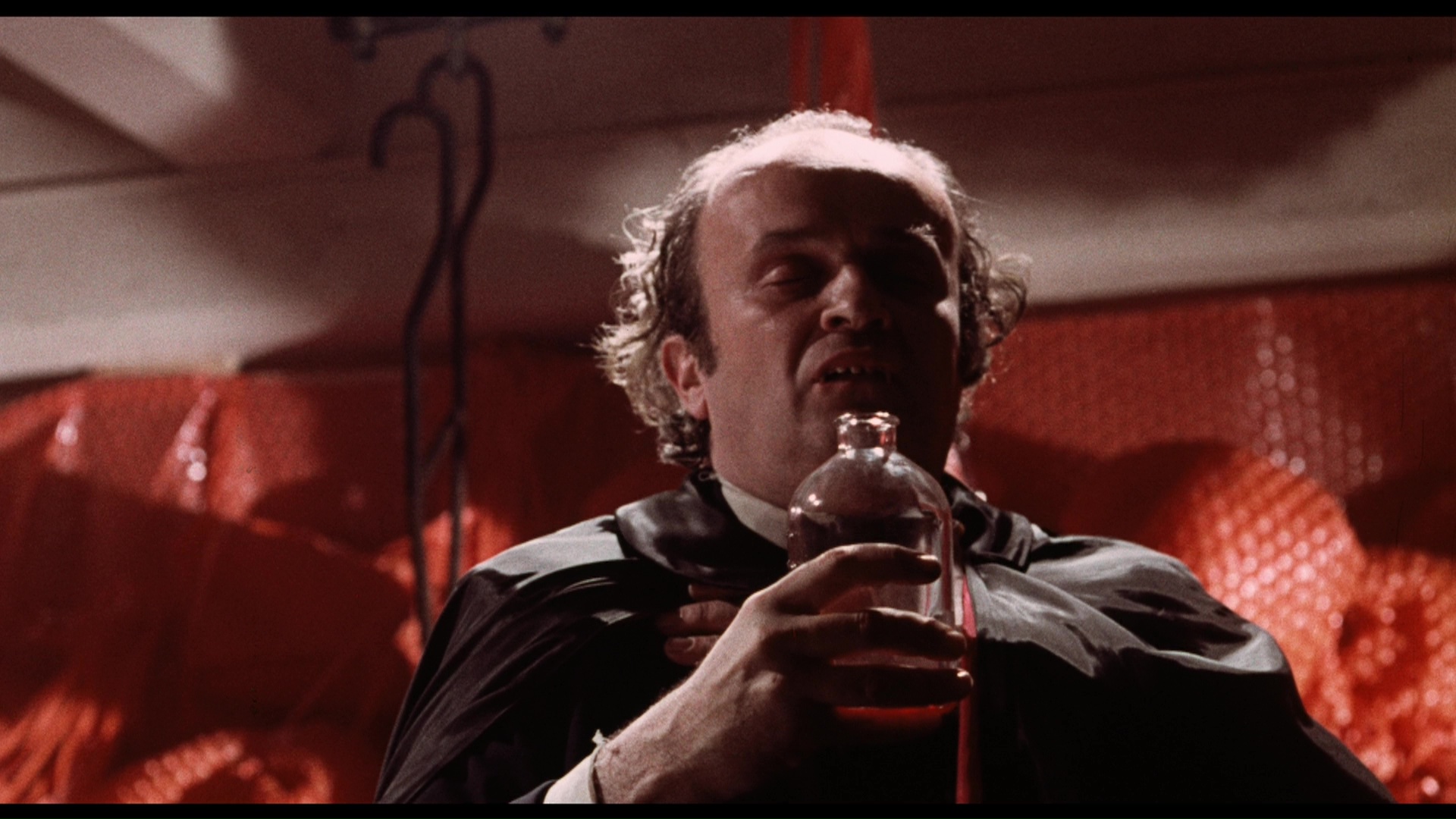 presumably trimmed to get an R rating. (The film definitely would've benefited from their inclusion.) The transfer was okay considering there's only one film element left in the world, but that left plenty of room for improvement as demonstrated by the Arrow release. The new 2K scan improves in every way imaginable; framing is identical but colors, black levels, detail... you name it, it's a nice leap across the board. The film still won't look particularly amazing given its existing condition, but this is a great way to make is acquaintance especially given the fact that only die-hard cult excavators even had a chance to watch the prior DVD. Audio for this film (and the other two in the set) is presented in LPCM mono with optional English subtitles, and as with the other two as well, you get a concise, excellent video intro by Thrower setting you up for the delirious ride you're about to take. Thrower also contributes an essay to this limited edition set along with incisive new pieces by noted genre writers Kim Newman, Kier-La Janisse, and Brian Albright.
