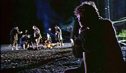 With The Wolves of Kromer, First Run finally makes the leap into anamorphic transfers, and the results are quite pleasing. Some of the night scenes are overly dark (probably the way they were shot), but overall the transfer is very clear and colorful. The Dolby Digital 5.1 mix is also satisfying, particularly when it spreads out the music to emphasize its strange but effective mixture of orchestral instruments tinged with techno elements. Despite the 100 minute running time stated on the box, the film only clocks in at 75 minutes, missing the mark even with all of the supplements included. "On Location in Llanyblowel," a behind the scenes featurette, including interviews with the director, writer Charles Lambert (who also penned the source play), and the main actors, sprinkled with production footage. The running commentary track with Gould and Lambert is a generally affectionate and sometimes insightful account of the filming, and they point out enough anecodotes about the actors and production team to keep things moving along smoothly. Obviously this isn't a film for everyone, but it's a pleasant enough diversion and an interesting twist on the tried and true notion of monsters as outsiders.