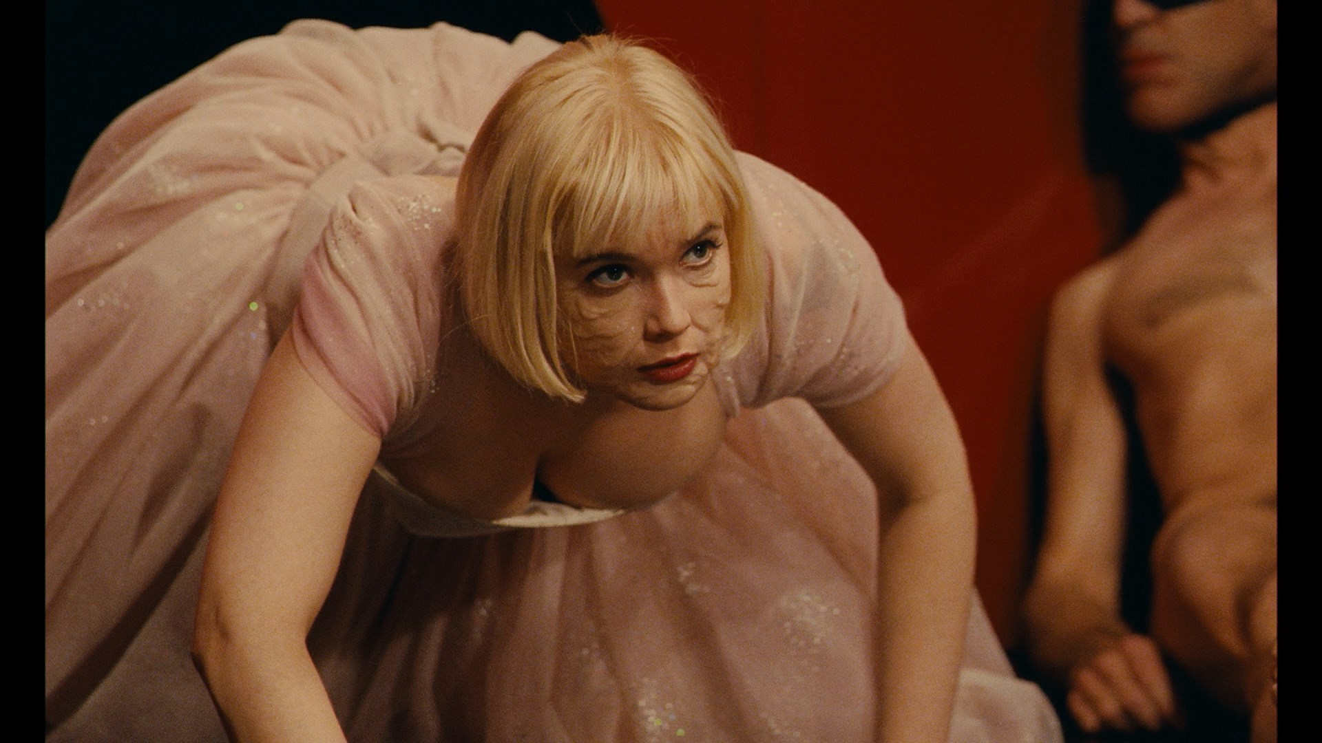 Intermission (Entracte) (2007, 15m36s) is a funny vignette with Moran and Salvatore Viviano having a stilted conversation about pop culture, flashing the camera, doing a fun impromptu performance of Lio's "Amoreux Solitaries," and reuniting with dead boyfriend Chapus, all shot by future Portrait of a Lady on Fire cinematographer Claire Mathon. In Land of My Dreams (2012, 20m36s), the homeless Bianca (Julie Brémond) gets picked up on the beach by a traveling performer (Paula Guedes), purporting to be her mother, who brings her along from town to town in her wagon for a string of increasingly elaborate and sexually charged outdoor performances. Finally the wildest and most graphic of the bunch, Islands (2017, 23m57s), begins with a young couple in love (Mathilde Mennetrier and Alphonse Maîtrepierre) whose intimate session turns into a crazed threesome with a grotesque monster before... well, you'll just gave to see it for yourself.