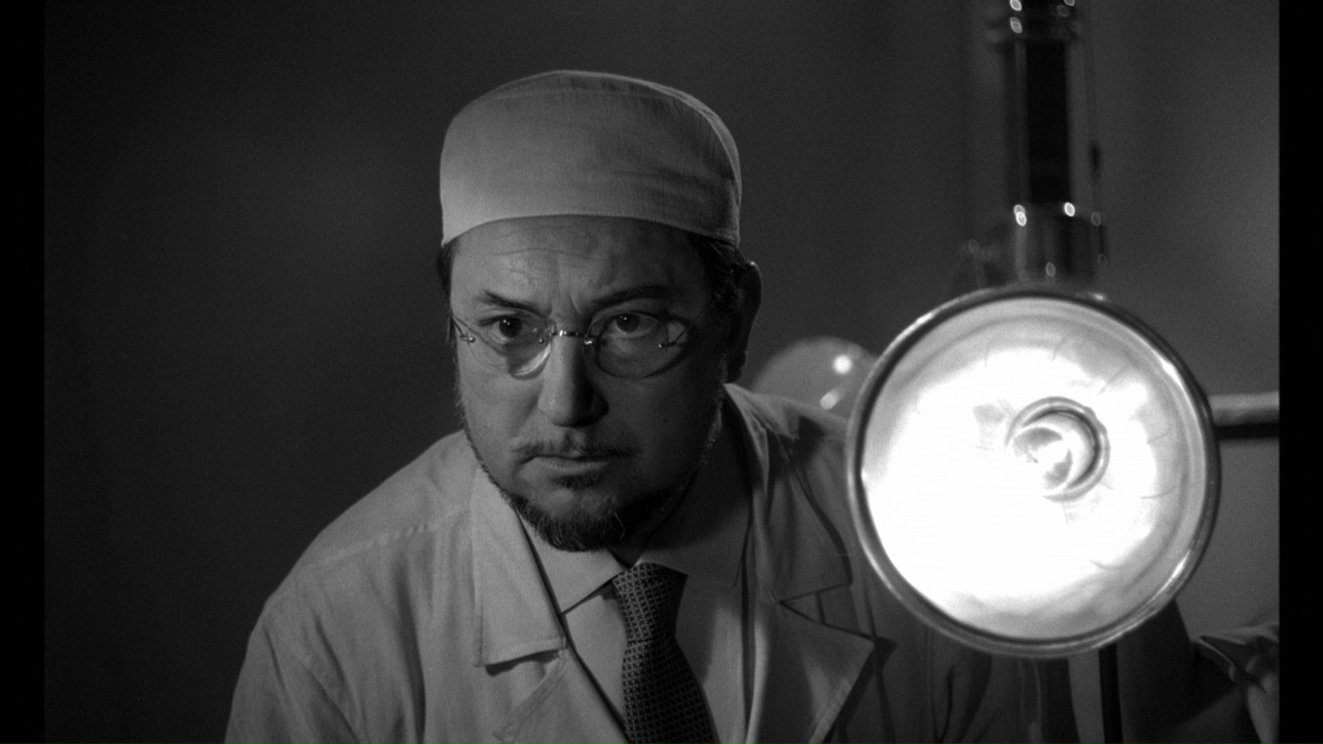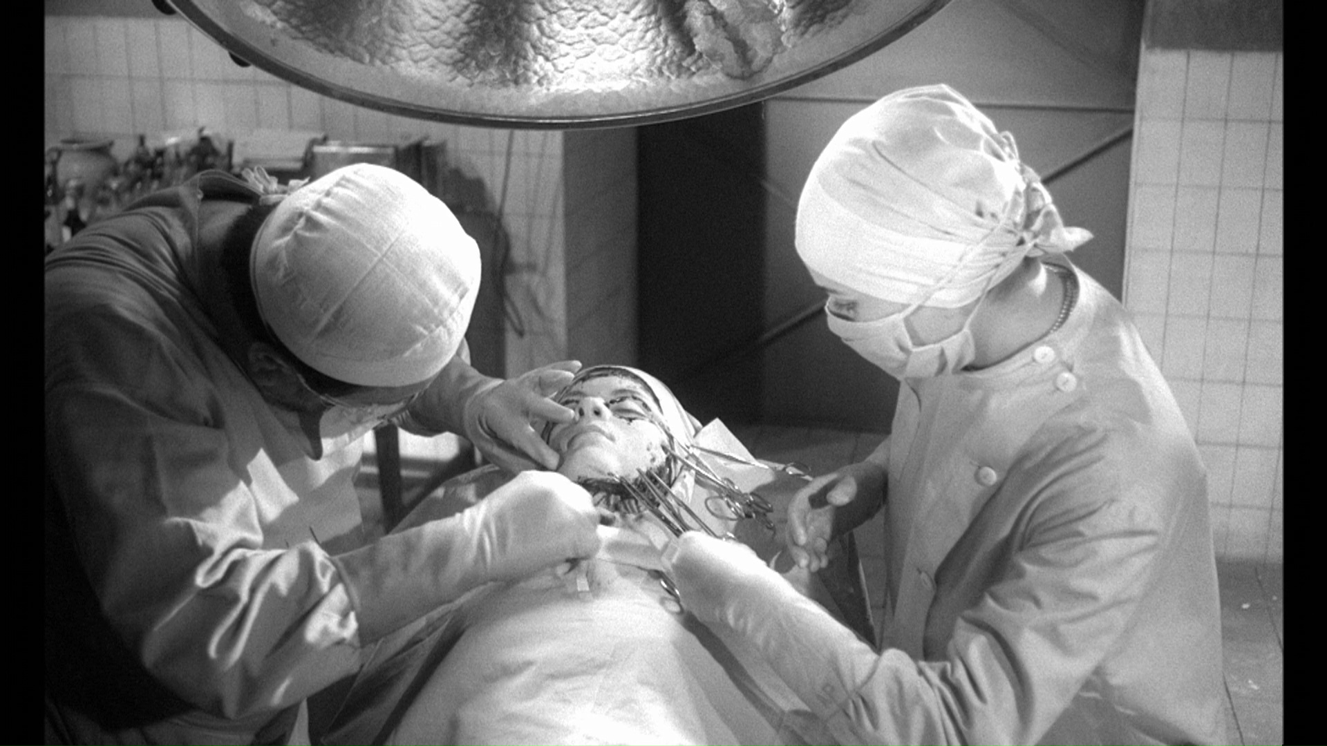 Surrounded by briefly illuminated trees, a car glides through the night under the steady hand of a determined female driver, Louise (Suspiria's Alida Valli), while a dark figure in a fedora and trench coat slumps in the back seat. When they pull up to a reservoir, we see that the passenger is in fact the lifeless body of a young girl, dragged and dispatched into the murky water. Cut to a medical conference where the respected Dr. Génessier (Brasseur) lectures about the benefits of X-ray irradiation in restoring damaged skin. Afterwards he's summoned by the police to identify the same girl's body, recently fished from a river. Génessier identifies the remains as his mysteriously vanished daughter, Christiane, and coldly retreats to prepare for the funeral. With such an opening, audiences at the time had a fair idea of what to expect; a madman or monster is on the loose, preying on young women with an assistant handy to dispose of the bodies. However, this masterpiece from director Georges Franju (Judex) - still the finest French horror film ever made - upends expectations from start to finish. As we soon learn, Christiane (Scob) is in fact alive and still living in her father's secluded estate, where he clinically attempts skin grafts to salvage his daughter's skinless face. Forced to wear an emotionless mask, she wanders the house as a constant reminder of her father's fallability (the injuries were caused by his hand in a car crash) and has only the captive lab dogs as friends. Meanwhile Louise prowls the city streets looking for new girls to provide as subjects, bringing them back to the doctor each time a graft fails. Meanwhile the police become suspicious and decide to send in their own decoy as one of Génessier's patients, but all does not go as planned.