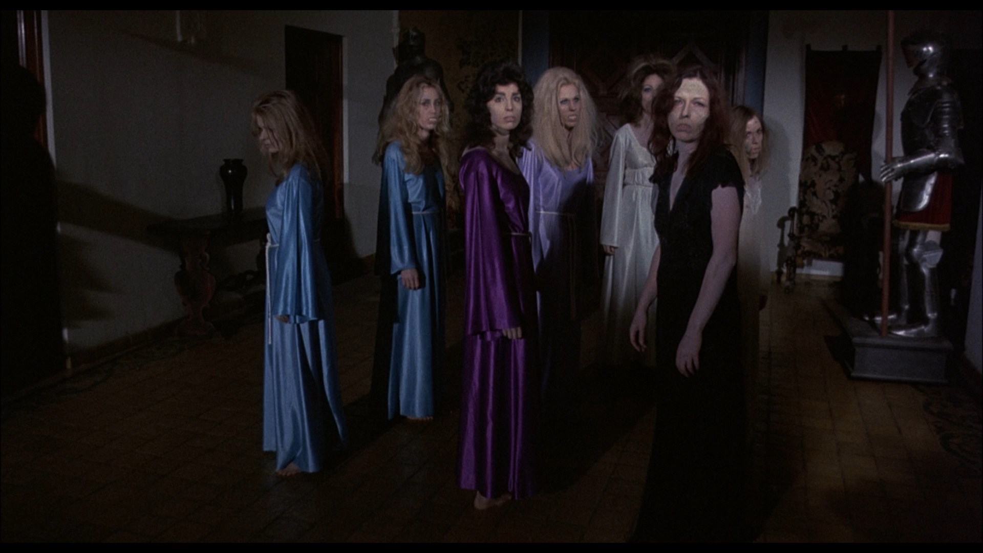 At a costume party on the premises, Yorga strikes up a rapport to Cynthia and irritates her fiance, David (Perry in an entirely different role), but that's just a prelude for a savage attack that night by Yorga's vampire brides. The next morning Cynthia has no conscious recollection of the assault, but in Yorga's clutches she has sudden nightmarish flashes and tries to piece together everything that really happened as the vampire turns out to be completely smitten and hellbent on making her his next bride.