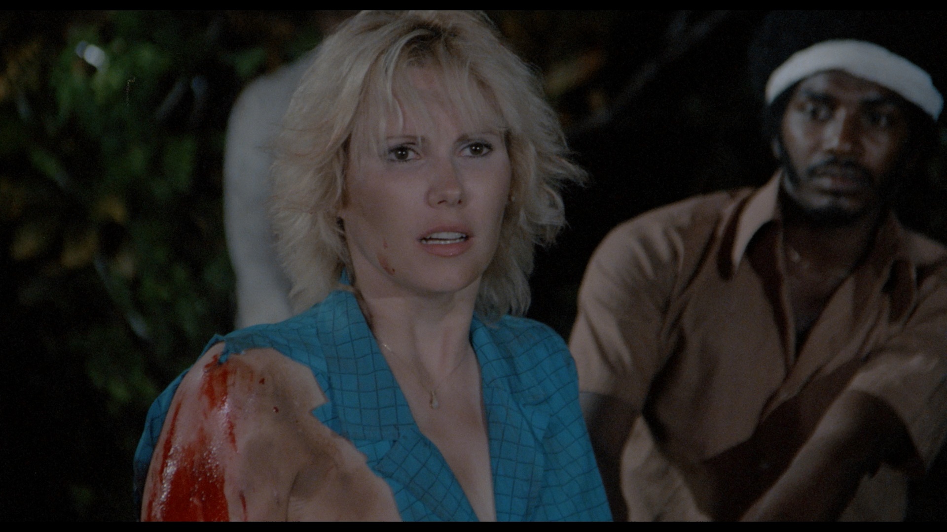 count film than any kind of traditional zombie outing (as well as offering a "massacre" only in the loosest sense), this strange, cheap-jack slice of tropical horror already felt way out of place when it opened in late '84 with a marginal theatrical release from Troma a few months after its biggest hit, The Toxic Avenger. An abundance of topless nudity and a few entertaining kill scenes were enough to barely satisfy the 42nd Street crowd, but the majority of the curiosity value here came from the opportunity to ogle Rita Jenrette, the onetime wife of disgraced U.S. Representative John Jenrette (of Abscam scandal infamy), two-time Playboy model, and eventual real estate guru. Her acting career proved to be brief, but her participation in this film was enough to make for colorful write-ups in horror books for several years. The film managed to stay very under the radar on home video for the most part with a terrible, hopelessly murky transfer popping up in 1987 from Fox Hills and getting recycled for a really, really lousy 2010 DVD from Troma. Fortunately(?) you can now see this film on its best behavior courtesy of Vinegar Syndrome's 2020 dual-format Blu-ray and DVD edition, sporting a new 2k transfer from the 35mm camera negative and looking way better than it ever did in theaters.