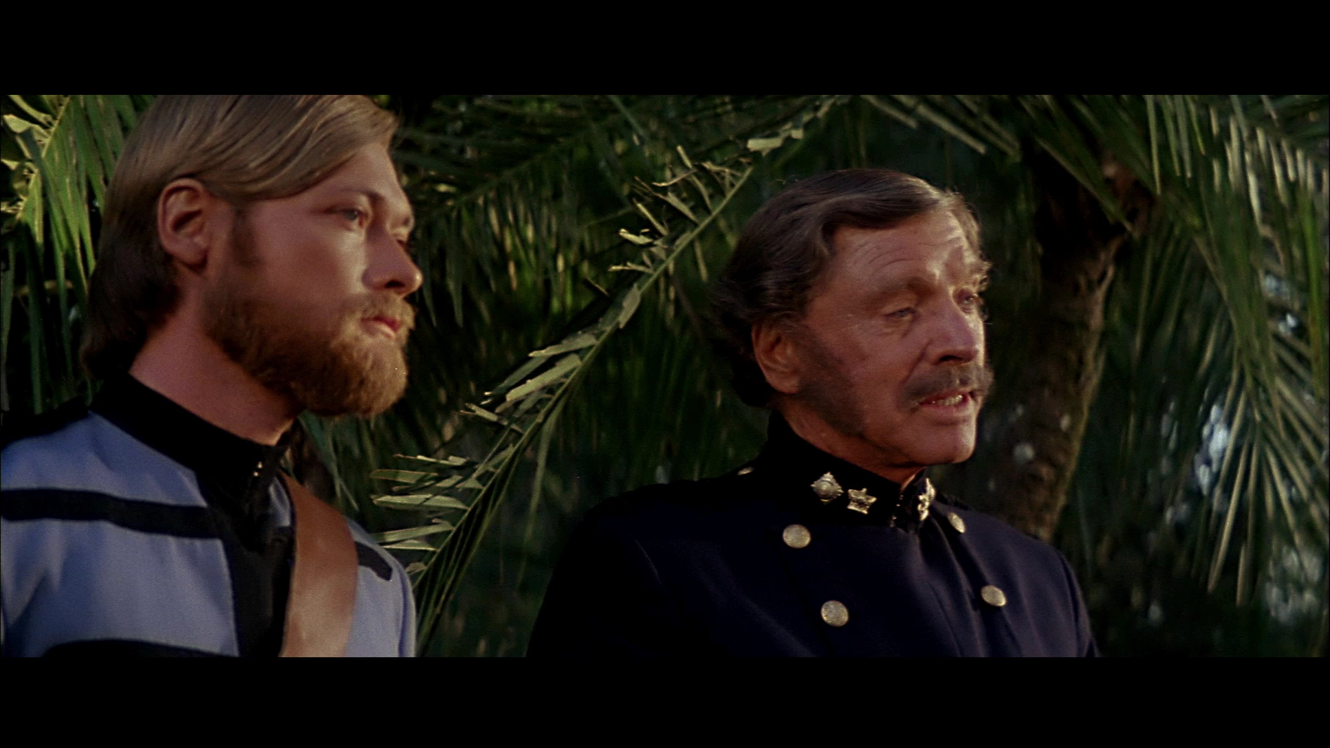 A video mainstay since its release, Zulu Dawn has never been regarded with the same esteem as its predecessor, partially because many audiences only saw it theatrically in a severely shortened version running 98 minutes to program it more easily on double bills. The prestige cast and lavish scope visuals would have made this a hit a few years earlier, but by '79 the all-star epic formula was starting to feel a bit out of date in the midst of more modern popcorn blockbusters. That said, time has been very kind to the film; O'Toole in particular gives an excellent, restrained performance (shot right after his fantastic turn in The Stunt Man), and the supporting cast teems with famili Due to a series of financial and legal dealings, Zulu Dawn has hopped distributors several times since the '80s and suffered from some truly terrible transfers, including a wretched non-anamorphic US DVD from Tango that hacked its scope compositions down to 1.85:1. The dual-format Blu-Ray/DVD release from Severin, which is region free, is a pretty big deal for fans as it presents the film in its correct 2.35:1 aspect ratio from a new HD transfer. It's worth noting that the end credits sport a credit for Dolby noise reduction, which has led some to assume the film was originally shown in two-channel stereo in some theaters; there's no actual stereo notation, though, and every existing video version has been mono, so for all we know at the moment this is the correct (and only) option. Anyway, the film can be played with either Dolby Digital or DTS-HD mono, and if you can go for the Blu-Ray option, it's far better; the DVD looks pretty compressed and flat by comparison. The Blu-Ray was obvious You also get some very substantial extras on the Severin release starting off with "The History of the Zulu Wars," a 25-minute overview of the real history behind the film with writer Ian Knight, author of the non-fiction study, Zulu Rising: The Epic Story of Isandlwana and Rorke's Drift. Incredibly, he manages to talk nonstop about the ins and outs of the two major battles during what appears to be a single take for almost half an hour, basically giving you a college-level crash course in the major players from the period including some later information you won't find in either of the films. The 20-minute "Recreating the War" features the film's historical advisor, Midge Carter, talking about the weapons research to put together the arsenals for the film, working with South African native police as extras (with walkie talkies inside their shields!), and other fun little tidbits about mounting the large-scale finale. "A Visit to the Battlefield" has Knight returning in front of the camera for a 16-minute tour of the real locations from the film, which was shot in the real Natal. He points out numerous existing landmarks where the real turning points of the battle occurred, and it's actually a little strange to see the landscapes looking so empty and peaceful now. The package also includes the theatrical trailer and, in a surprise not noted on the packaging, 12 minutes of outtakes (sourced from a VHS copy) from the climax of the film, featuring raw production audio and a whole lot of extra Bob Hoskins footage. The original clapboards are still left in for many shots, too, a nifty extra touch. All in all, a very satisfying release that finally makes up for years of neglect for a very impressive film.