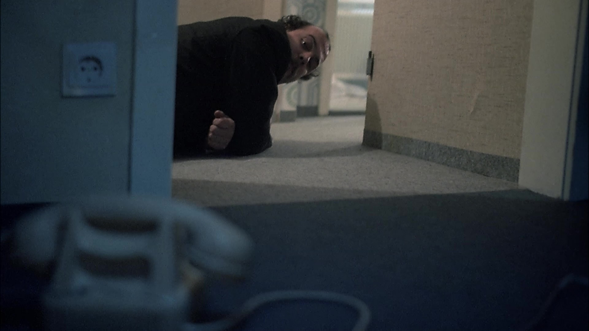 The Cult Epics release features the same satisfying HD transfer found on the French disc, framed at 1.78:1 with a similar color scheme. The film has that somewhat rough, occasionally gauzy look with deep blacks found in many early '80s European productions (think Diva or In a Glass Cage) but this appears to be a solid reflection of the source material. For some reason the French disc has a negligible extra couple of pixels of information on the right and bottom, but it has zero effect on the appearance of the film. (Here's a sample grab from the French disc.) In a nice change of pace, Cult Epics has gone the lossless audio route with a DTS-HD MA 5.1 German track, plus a 2.0 German or French track, with optional English subtitles. The film can be played with or without the distributor-imposed, 7-minute prologue, which spends a great deal of time elaborating on Leder's criminal background to explain how he wound up in prison, as well as an optional 5-minute intro by director Gaspar Noe (Irreversible) touching on his love of the film and his preference for the voiceover-laden French version. Also included is an audio commentary with Kargl and critic Marcus Stiglegger, which goes into extreme detail about both the production and the creative decisions used to trick the viewer's sense of space and scale, resulting in a realistic but oddly heightened experience. Both the intro