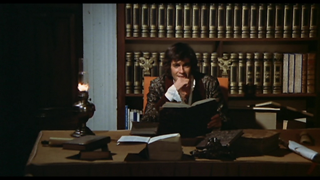 Of course, that night is about to fall again when a scholar named Karl (Damon) arrives in Transylvania in search of the mythical Ring of the Nibelungen, only to cross paths with his more debauched twin brother, Franz (also Damon). While Karl commiserates with the pretty daughter (Barros) of the innkeeper, he and Franz are also lured by the wicked countess (Neri) who has a habit of slipping a creepy, glowing red ring on her partners' hands after bedding them at night. As it turns out, she wields the supernatural ring of Dracula, which bestows great satanic power as long as the appropriate sacrifices are kept in check.