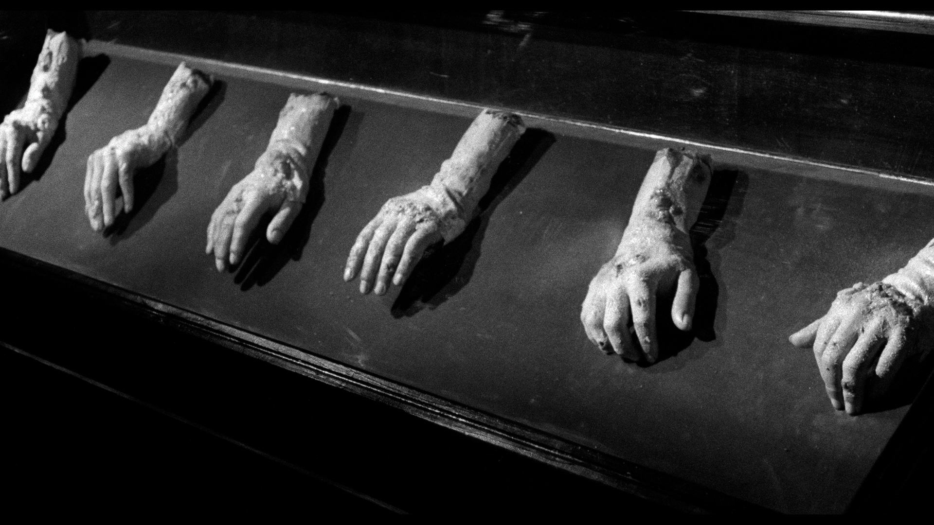 First up is a title that's floated around on the public domain scene for ages, at least in its U.S. 1967 theatrical version which was modified significantly from its original Italian cut two years earlier. Terror-Creatures from the Grave, originally shot as Cinque tombe per un medium (or Five Graves for a Medium), is another sterling showcase for Barbara Steele the same year as her beloved dual roles in Nightmare Castle. Her scream queen days in Italy were winding down by this point (followed only by The She-Beast and An Angel for Satan in '66), but you'd hardly guess it here. Something is amiss at the sprawling Hauff estate, which is connected to recent mysterious deaths in the wake of its patriarch's well-concealed passing a year ago. His bubble bath-loving widow, Cleo (Steele), and daughter Corinne (Maravidi) still reside there with the servants-- including the always shifty Luciano Pigozzi as butler Kurt, so you know things must be bad. Among the late master's decorations in the house is a rack of severed hands belonging to plague victims and supposedly imbued with occult powers, and it's