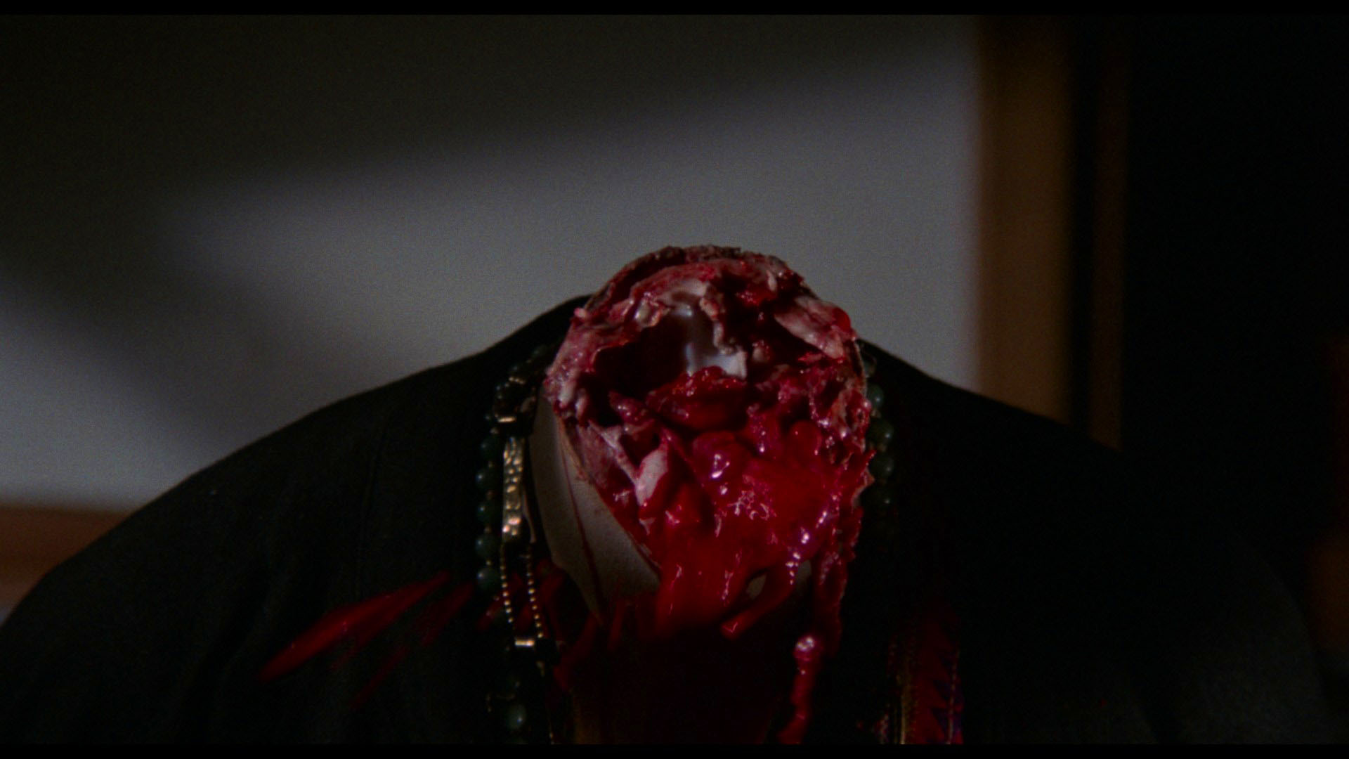 In 2026, Severin Films presented the first UHD incarnation of the film as part of a five-disc(!) set originally announced for Black Friday of 2025. Both the first UHD and Blu-ray are devoted to a new scan of the English-language version from the original negative for the first time, with radical improvements in both color timing and especially audio quality with the DTS-HD MA 2.0 English mono track (with optional English SDH subtitles). The UHD in particular does a vastly superior job of handling the magic hour outdoor scenes which now have a beautiful dusky quality you couldn't see before, and detail throughout is impressive. The framing does shift here with less on the sides and bottom. Tim Lucas provides a completely new, revised audio commentary here that also makes for a significant upgrade over his older track, fixing all the earlier snafus and delivering a more confident flow of information including considerable material that's come to light since the publication of his book. The U.S. Carnage trailer is also included on both discs, while the Blu-ray adds more extras starting with "All About My Father" (14m30s) with Lamberto Bava chatting about the lessons he learned on his dad's sets about life itself and filmmaking.