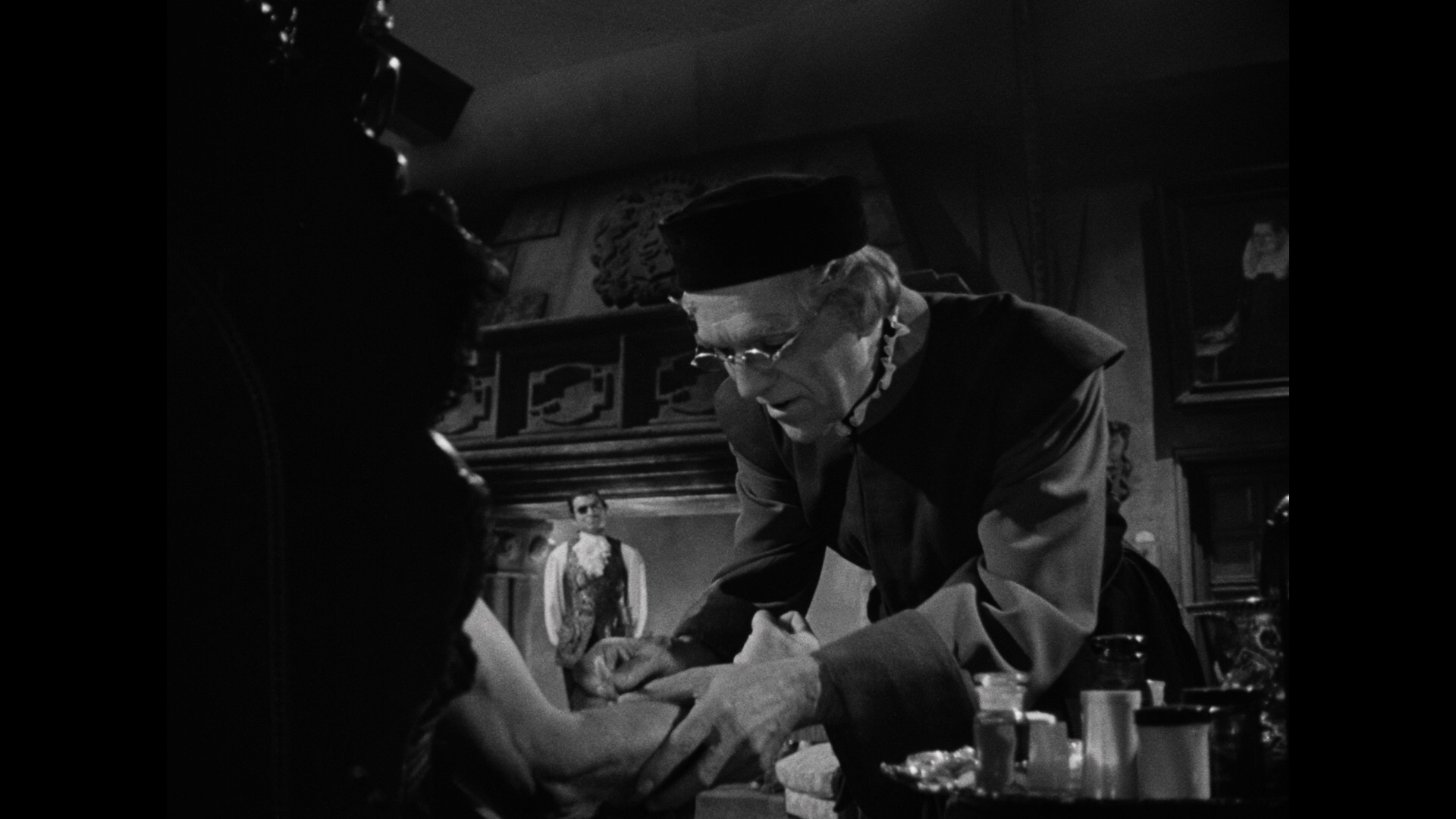 A wonderful little thriller, The Shadow of the Cat is a great viewing choice for a dark and stormy night thanks to the sure direction of John Gilling, who would go on to helm Hammer's The Plague of the Zombies, The Reptile, The Pirates of Blood River, and The Mummy's Shroud. Among the inventive visual flourishes is a distorted "cat's eye" trick (via an anamorphic lens) used to depict Tabitha's POV throughout the film, and it's a joy to see the cast of pros tackling the fun murder plot with Morrell in particular getting some fun moments skulking around the dark set saying "Here, kitty kitty."